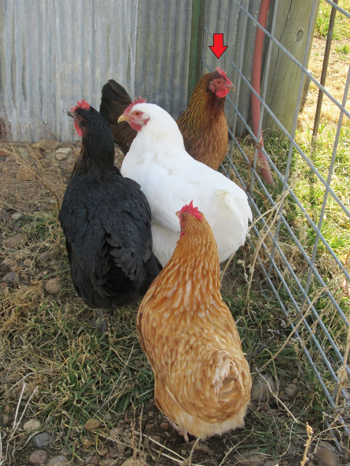 - First four (4): All of the hens for an initial size/shape comparison (black one is same age and used to be thinner but relatively comparable in size)