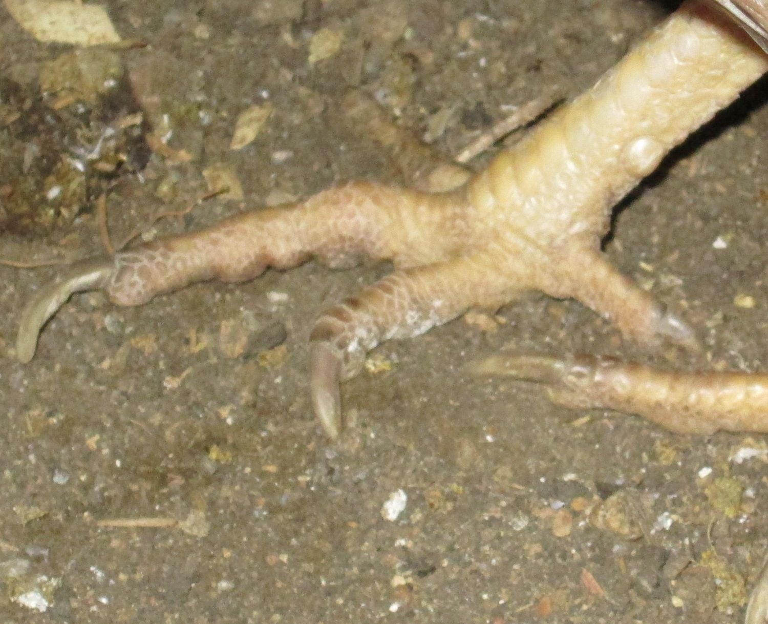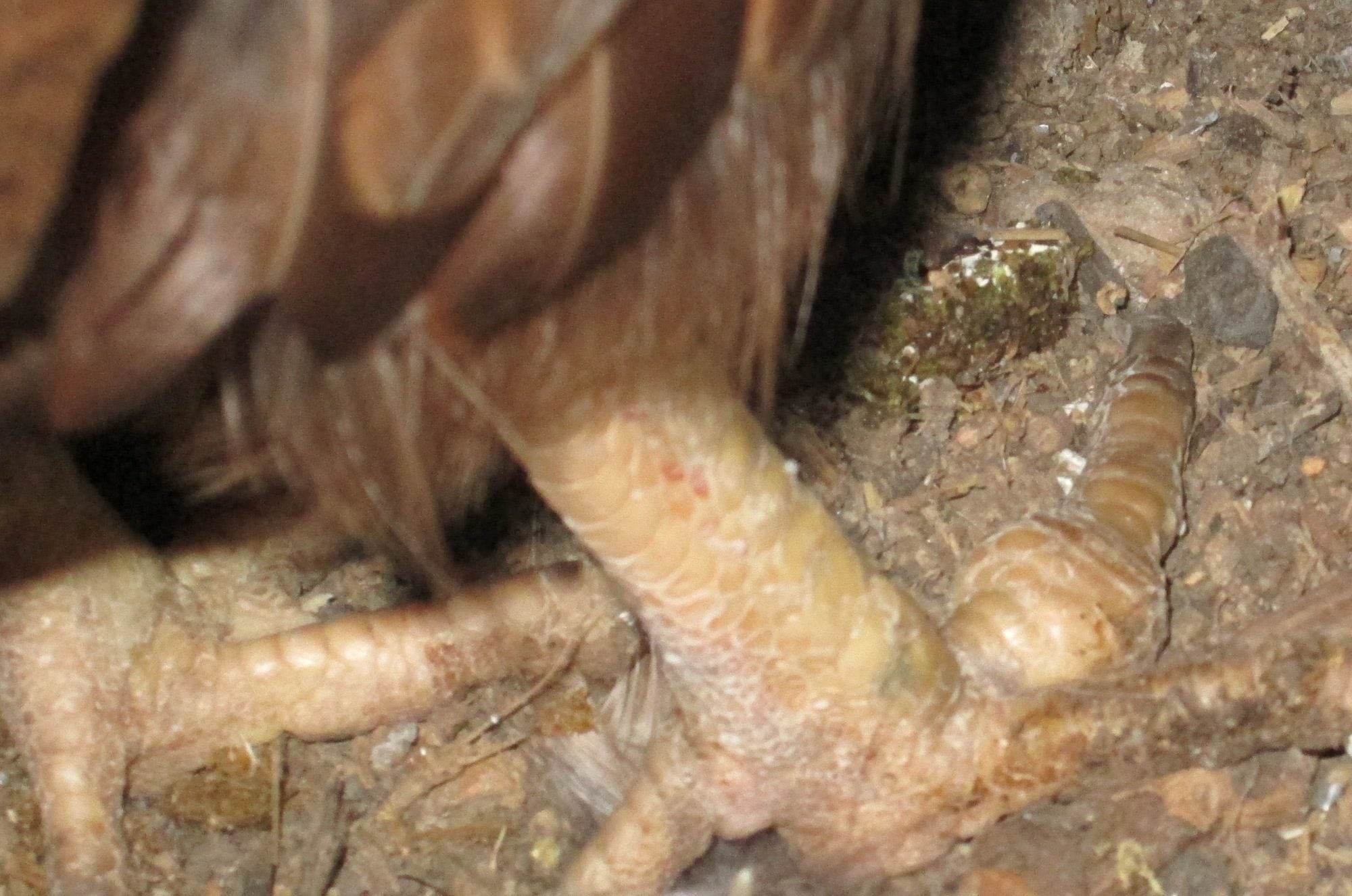 - I read up on Bumblefoot, but that seems like it's more on the top/external of the toe and not the bottom of the foot. I will still be checking the bottom for any scab today. I also read about scaly leg mites, but her legs and feet don't look raised or crusty.