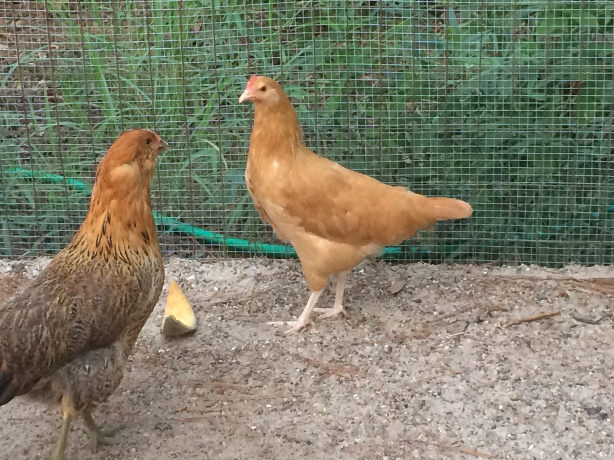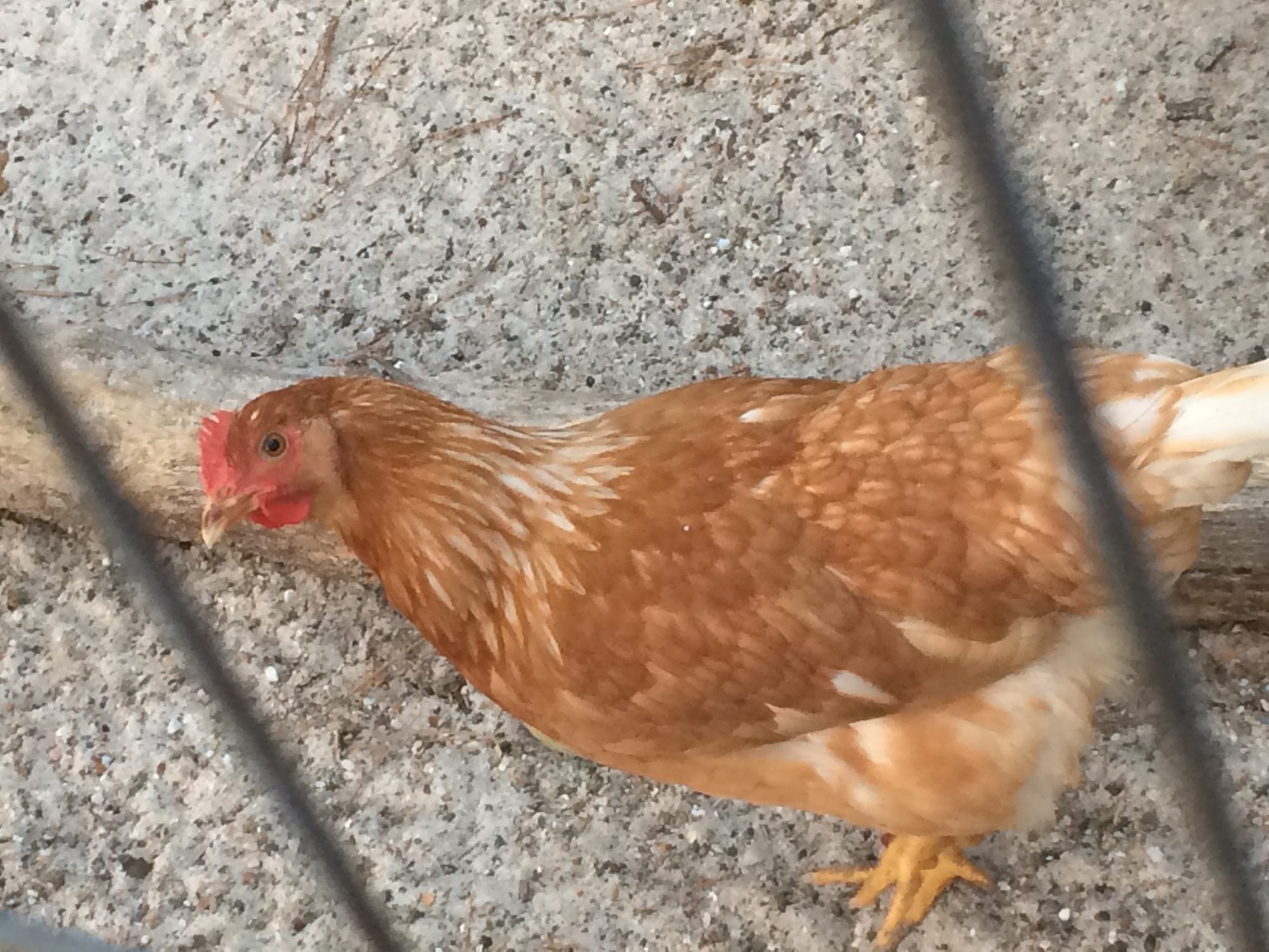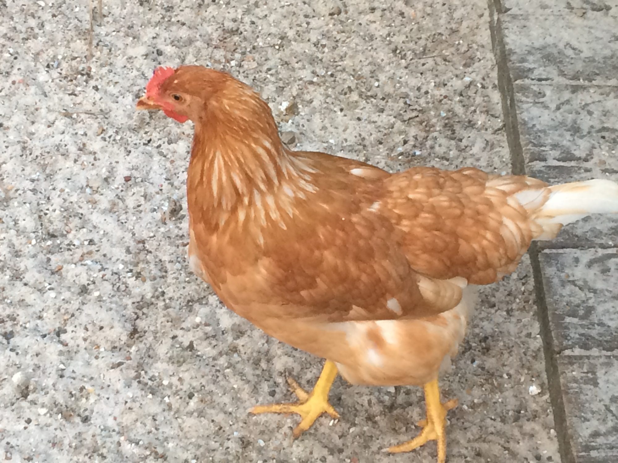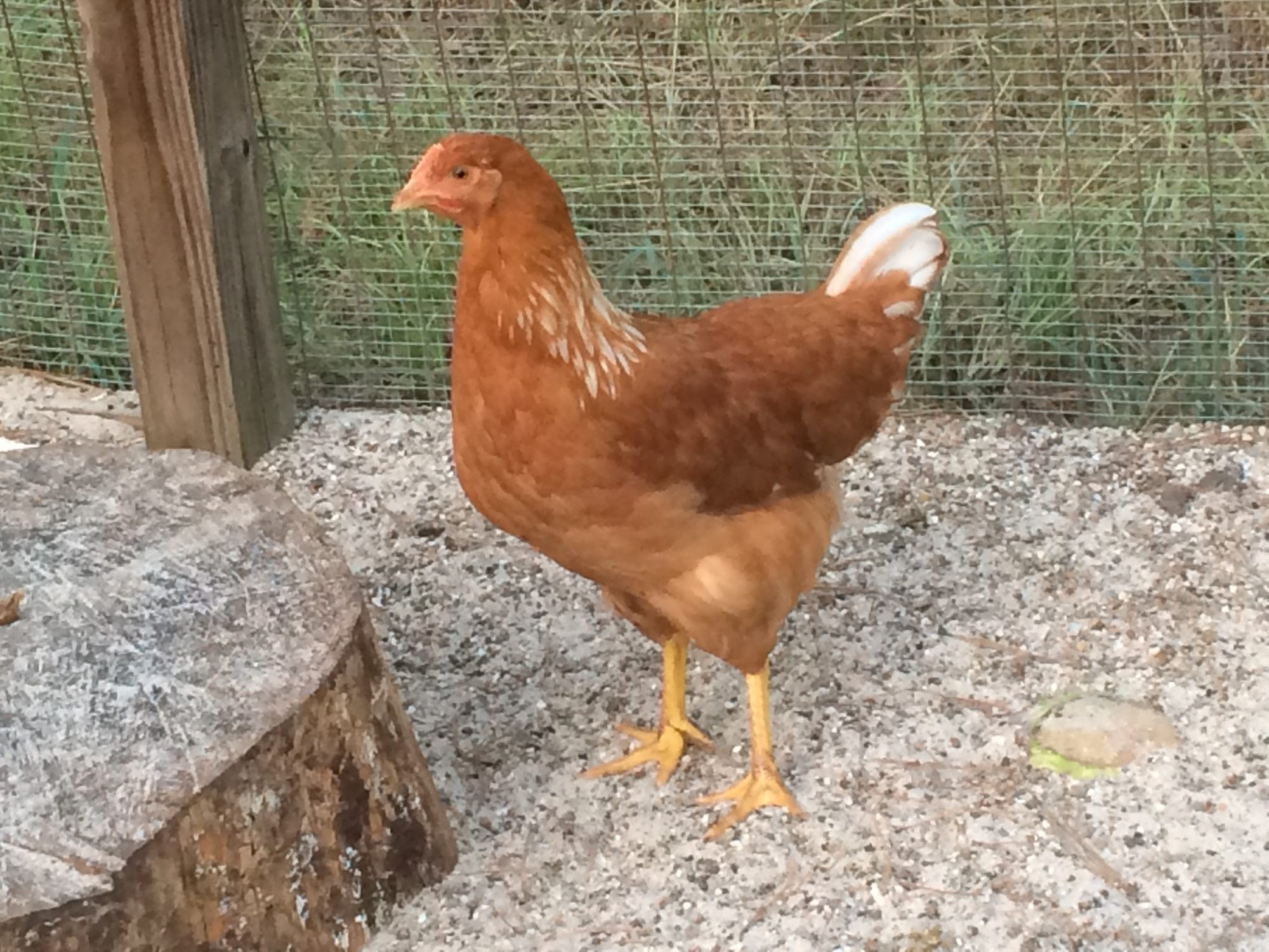 One of the other golden sex links (pullet- not same bird)- Darker colour overall, less white undertone, lighter and smaller comb?