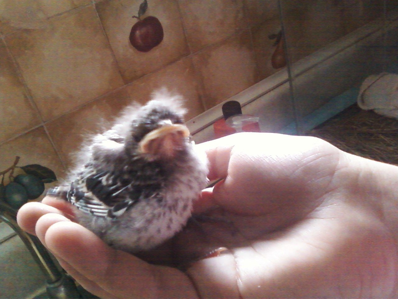 My sweet UGGO is a baby Mockingbird I found. Such a sweet little bird! These things can EAT tho, so I took it to wildlife refuge center. I miss it, but it is in great hands now!!!