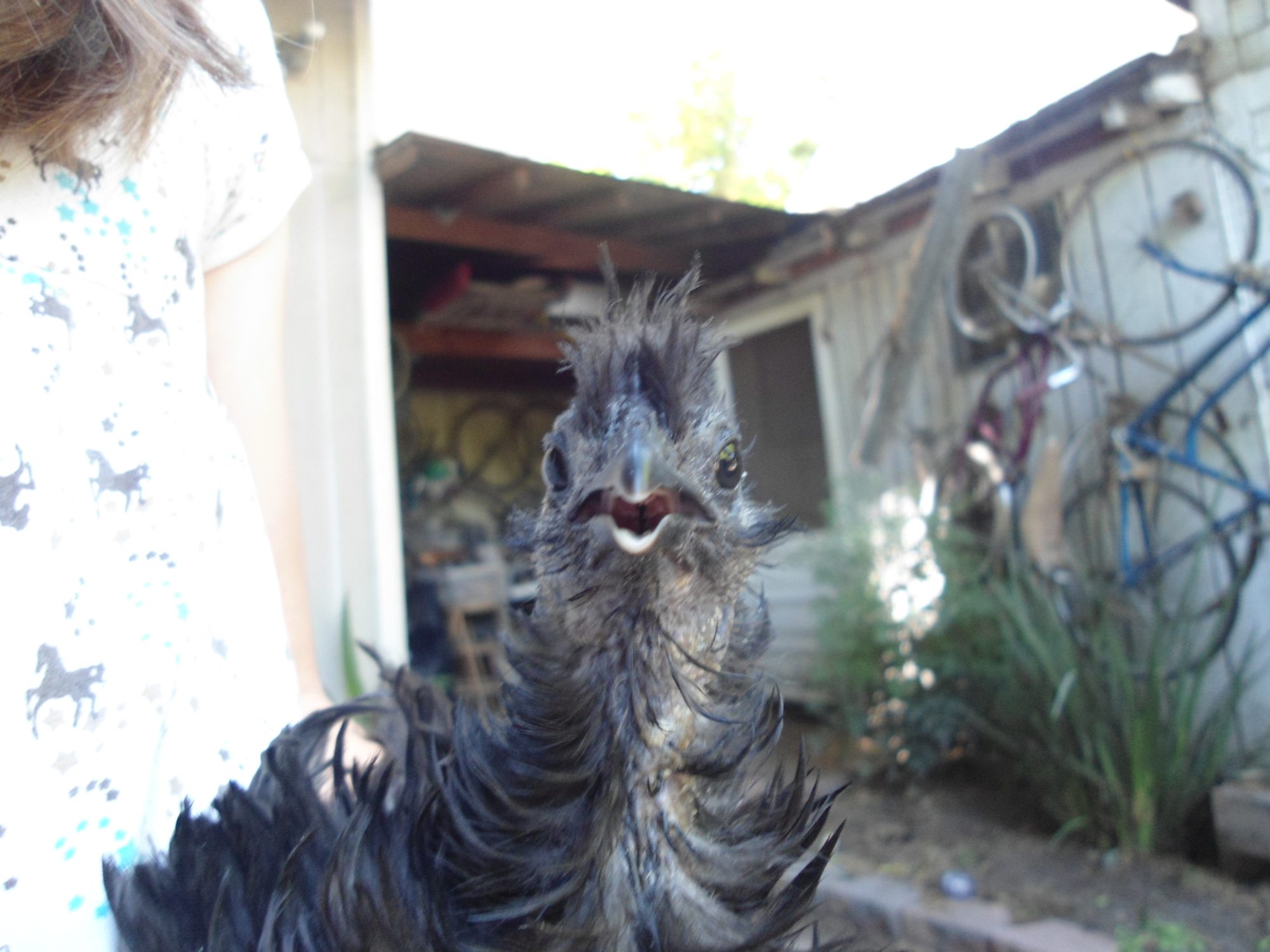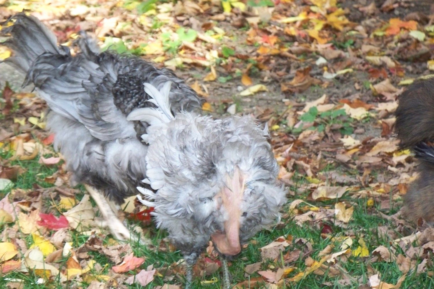 Her previous owner had raccoons raiding their coops and her mother and father died.
