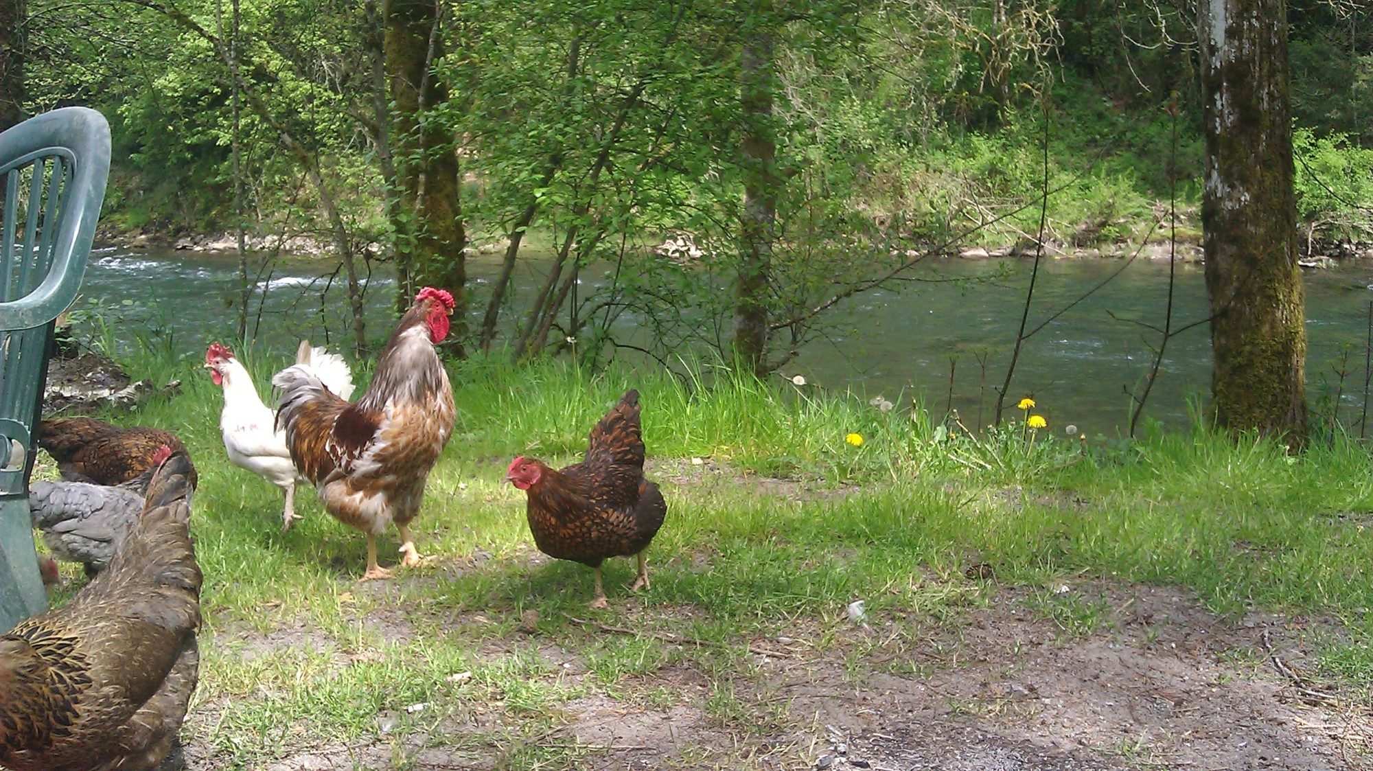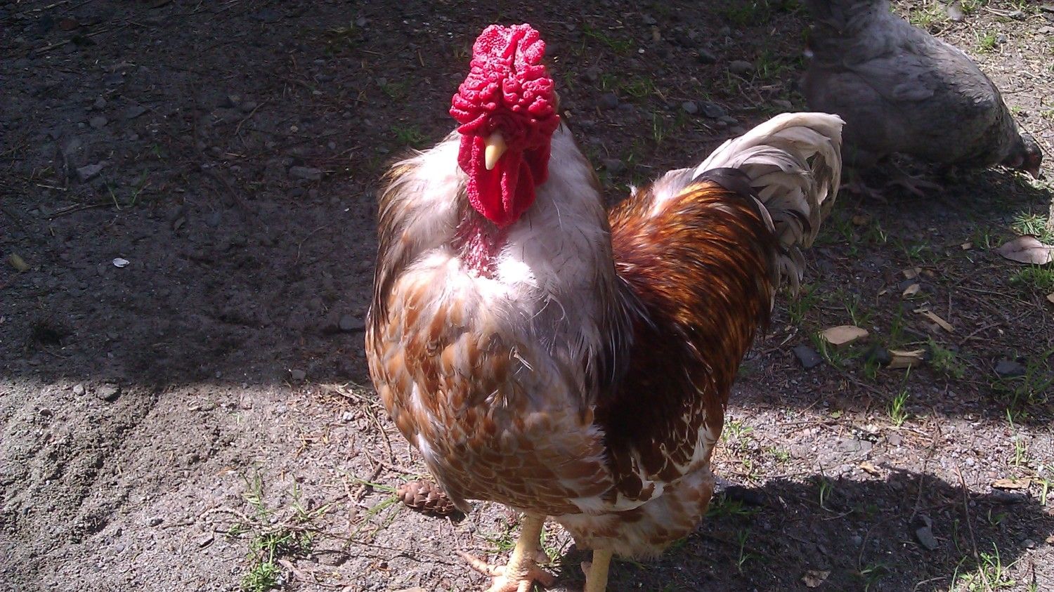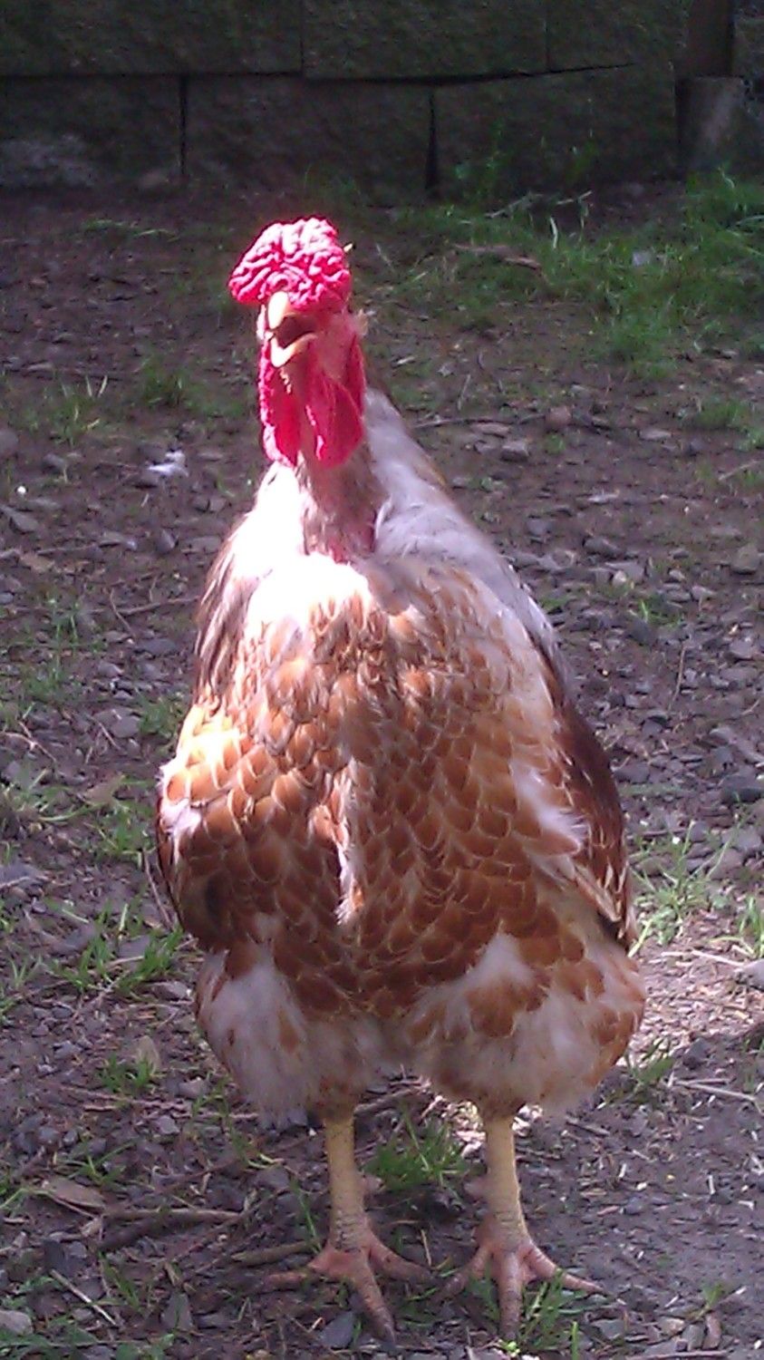 PS-his neck feathers are just starting to grow back...we had a banty rooster who was beating him up and pulling them out (he's at freezer camp now). You can click on the pictures to make them bigger so you can see this thing in all of it's glory