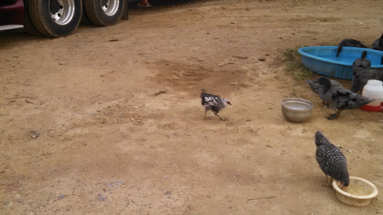 Here is a close up of Ugly Chick... I have a silver laced wyandotte chick but it isn't slow to feather like this one... It is at the bottom of the photo is below. You can also see "Ugly Chick" in this photo too.