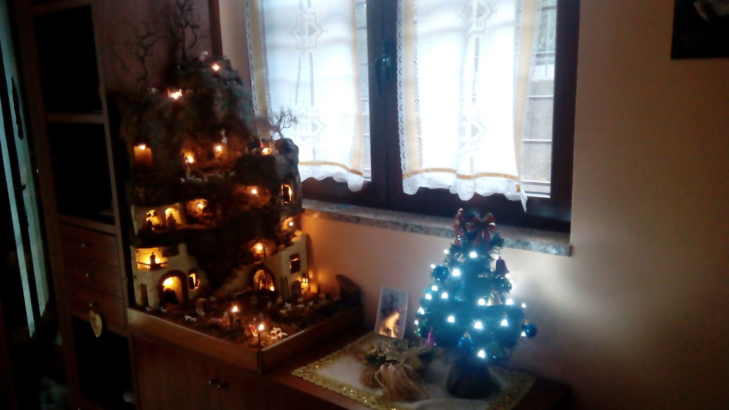 My grandmother had a slight ischemic attack 2 weeks before Christmas but fortunately has recovered well and has spent Christmas at home with us. We put up the Christmas tree and set up nativity scene figures.