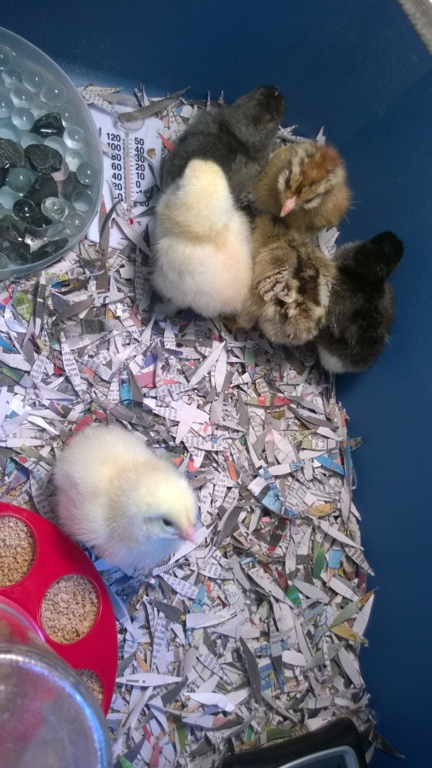 Come hatch day, 5 chicks made it to lock down and hatch. The only true Ameraucana to hatch was deformed and sickly, and died within 24 hours. So now we have 2 wheaten marans, 1 black copper marans, and 1 BCM x Blue Isbar. 4 pullets. Perfect!