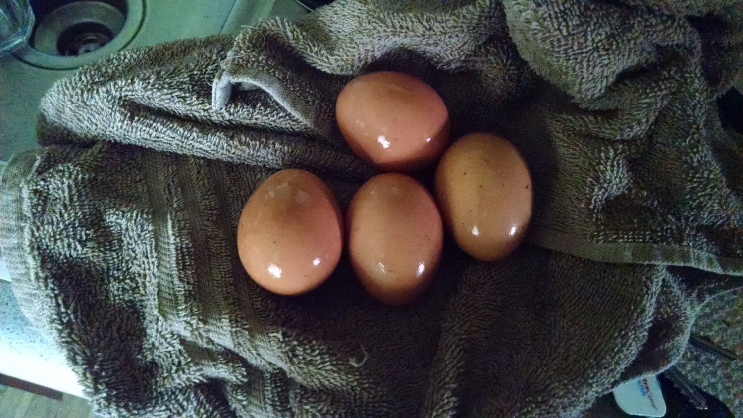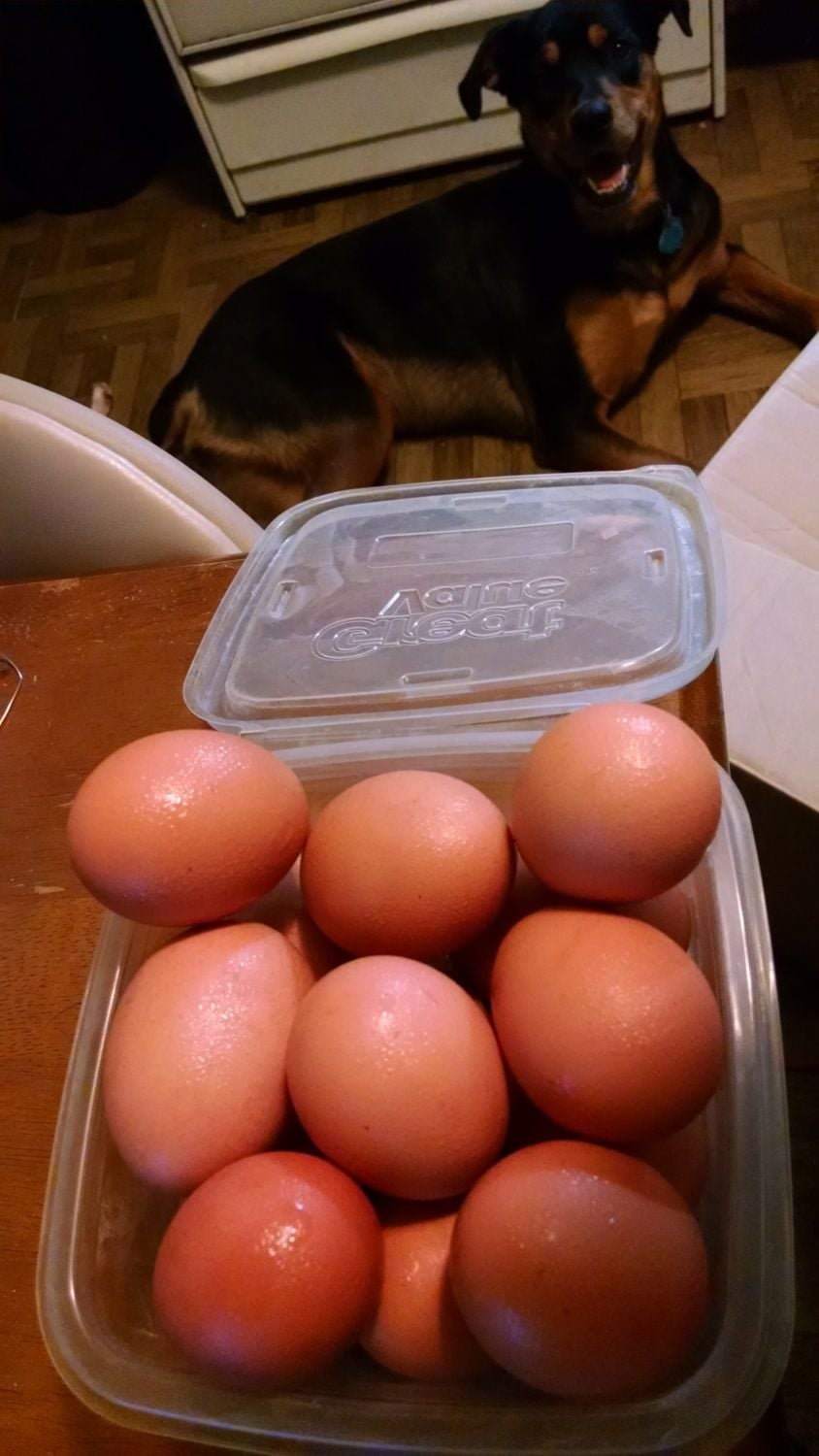 Labor Day night provided a wonderful Thunderstorm, I went to check on the 4 chicks and 4 ducks first thing in the morning (as is the custom every morning) and noticed 4 beautiful eggs in the chickens hutch. Now comes the issue...... 25 weeks would have put them laying their first eggs around the first of October so I was caught a bit unprepared. To further the issue we searched around their foraging areas and found 18 more eggs. All chicken eggs (too small to be duck). Which means to me that the 'oldest' eggs have been laying around Southwest Ohio weather for roughly a week.