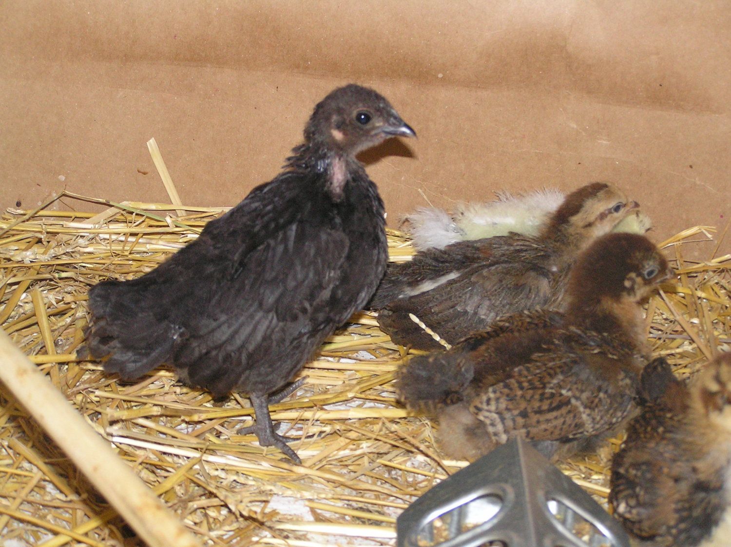 So I buy 5 chickens at 4 bucks a piece & spend time with them daily. Treating them to grubs & meal worms. Then a week ago a friend gives me a little runt chicken, by far the eldest of my group. She hasn't learned that my hands bring forth treats. So who is the friendliest? The new little runt, of course. She will fly out of the cage just to sit on my lap, snuggle & get petted. When ever I pick up the others they tolerate it but go back to the cage when they get the chance! The black one is the friendly little runt, I named her Zooey.