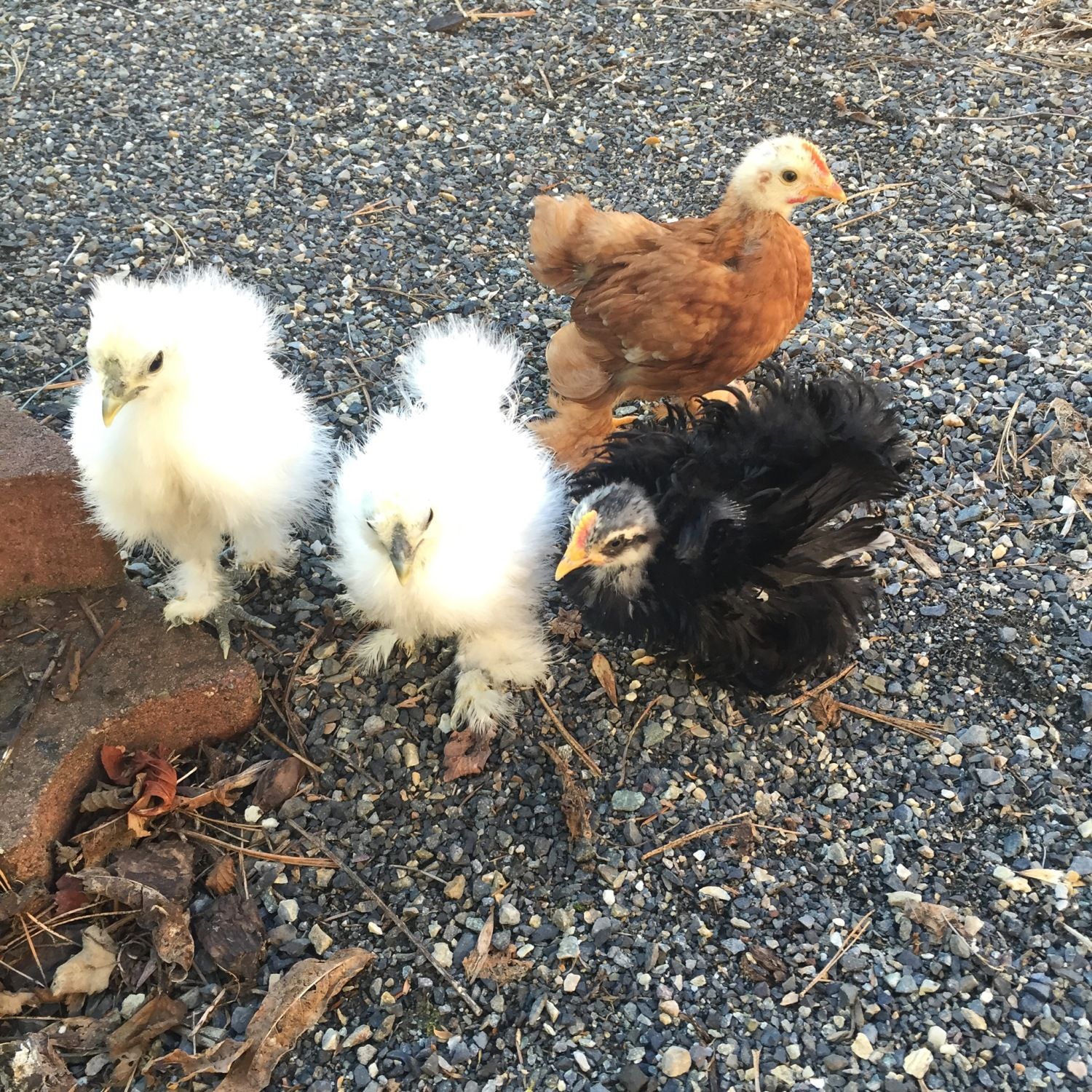 We are first-time chicken people - we have 4 "bigs" and 4 "smalls." The smalls are 2 silkies and 2 frizzled bantams of some sort, but only 1 frizzled. I would love some help figuring out what breed the frizzles are. The black, Beyonce (or Bey Bizzle) I believe is a cochin. I'm not sure on the brownish-red, Shakira. Also, I'm thinking Shakira might actually be a too. Thoughts?