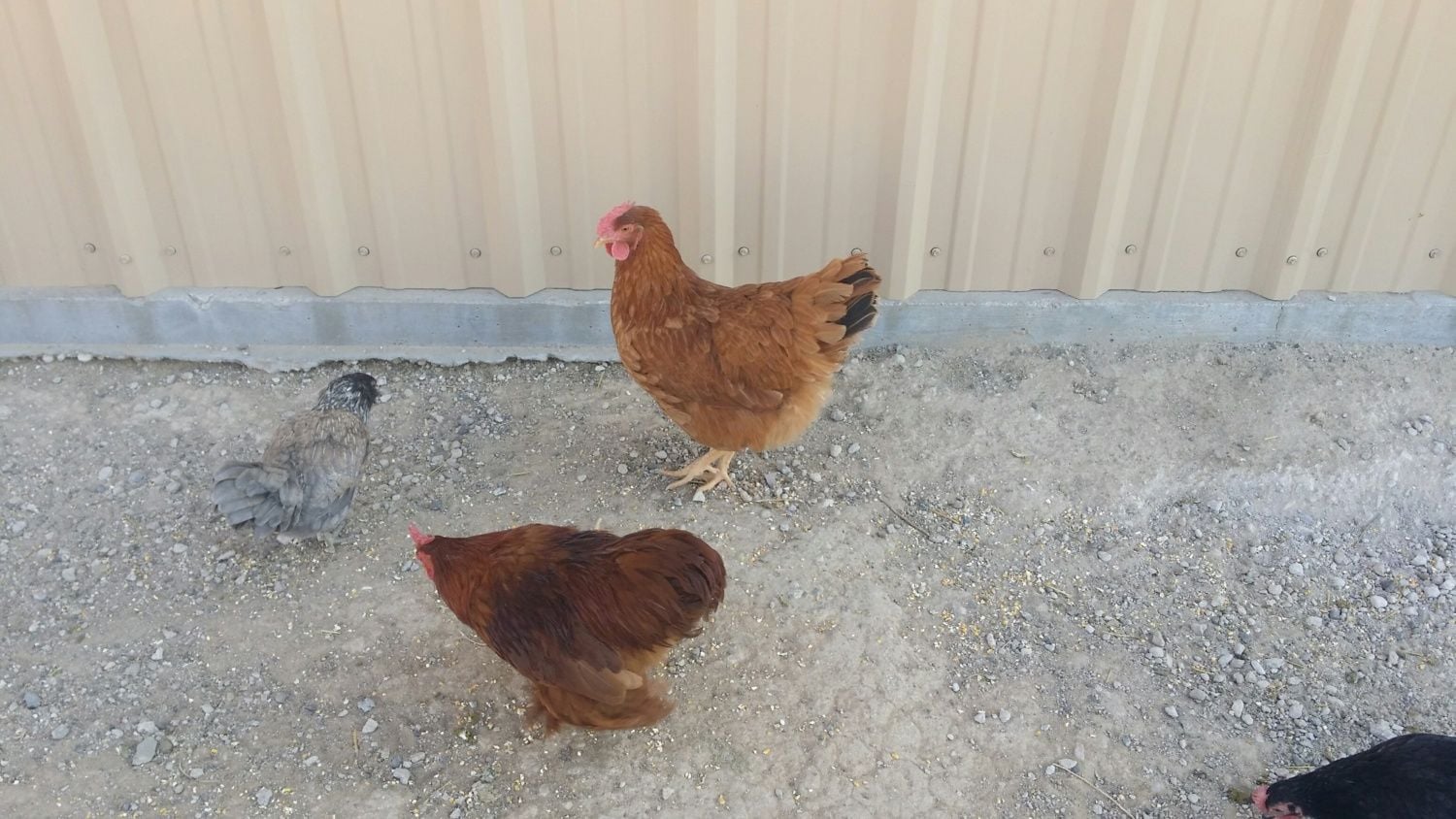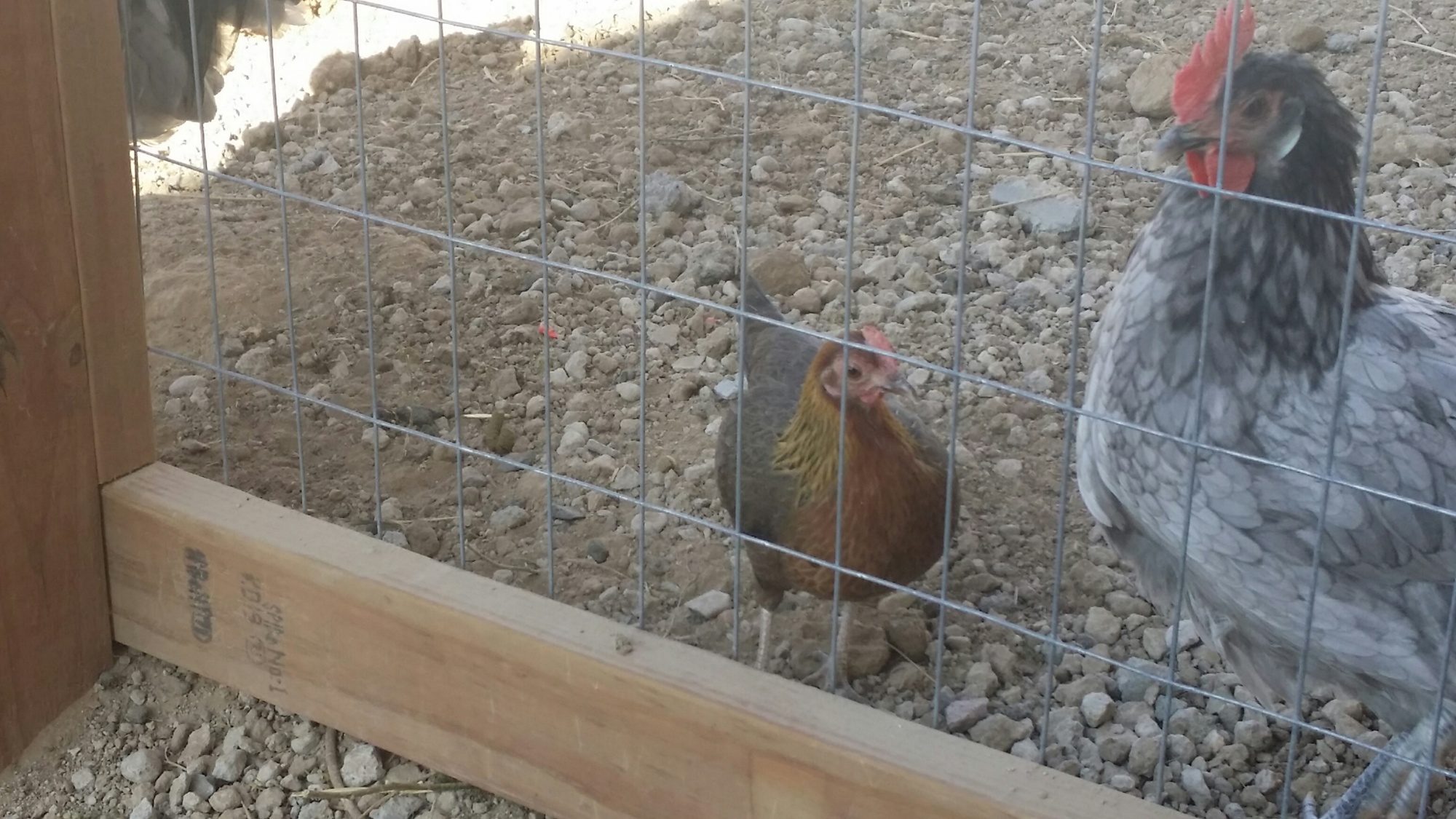 The chicken in question here is the gold one in the back. The chicken in front is a Rhode Island Red, however they have noticeable differences.