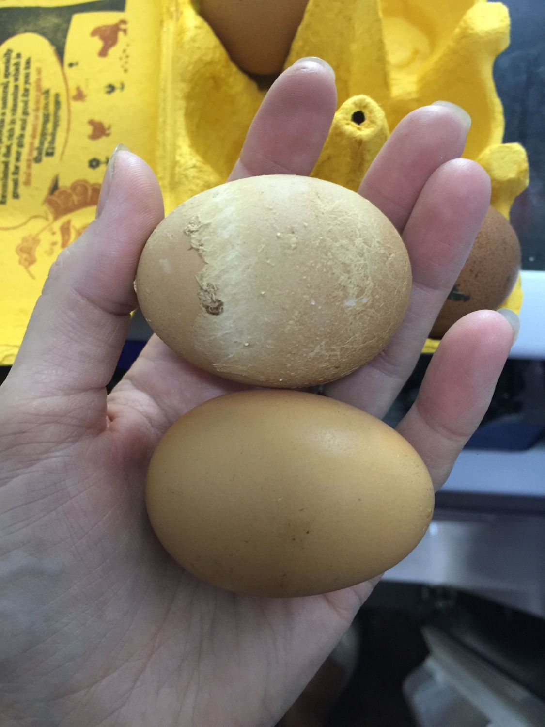 We have 3 hens, and mostly get 2 eggs a day with the occasional 3rd, however, I've now had two of these looking eggs in the last few weeks and wanted to see if anyone has experience. They have like a dried skin layer over the outside of the shell.