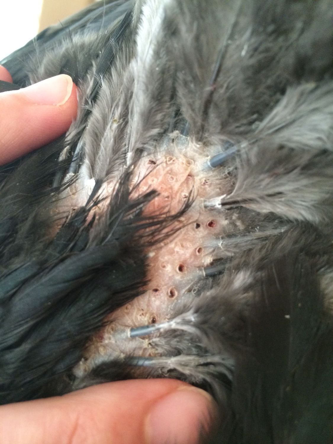 Where is the feather loss - at the base of the neck, or further down the back? It is further down the back (bottom half)A bit more information would help: