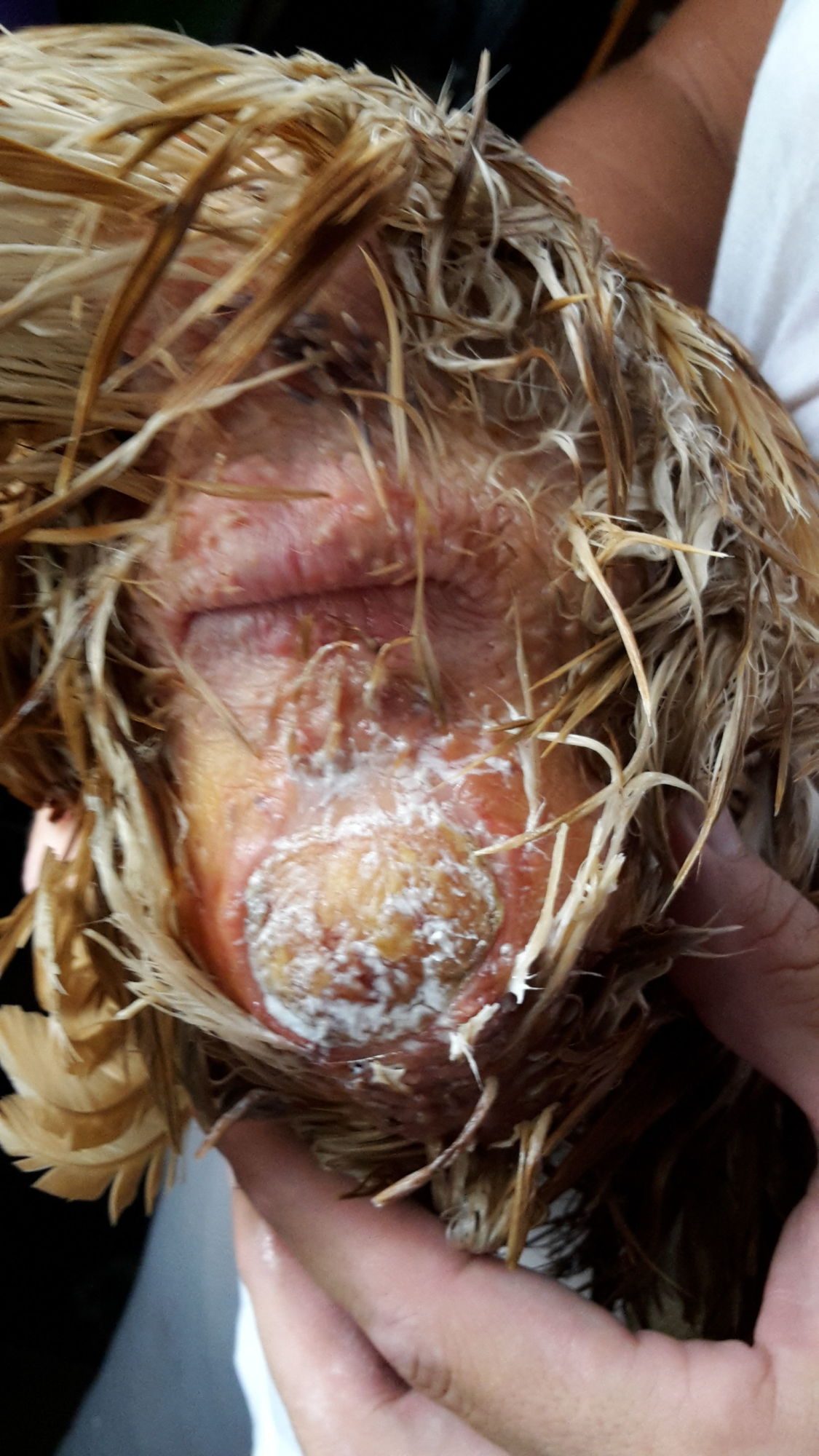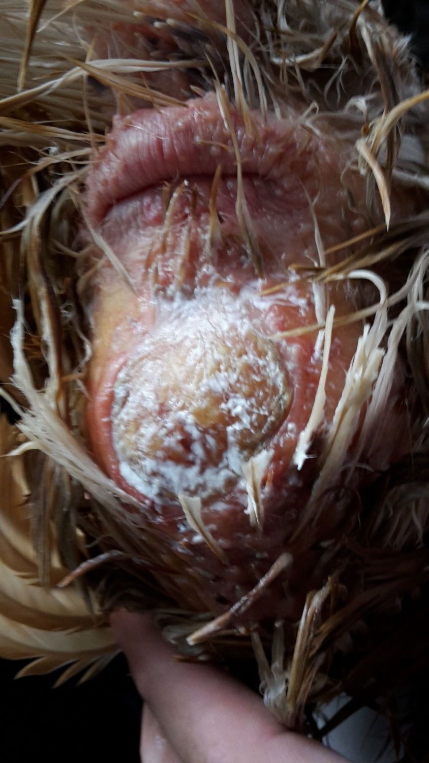 My drake (yes a duck) has been trying to mate this hen. We noticed she had a dirty butt and feathers missing a few days ago. Since then we have been soaking, cleaning, and putting antibiotic and anti-fungal cream on her. (That is the white stuff in the picture.)