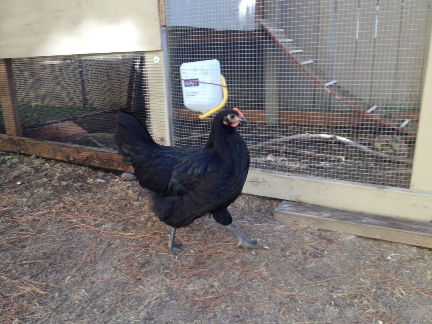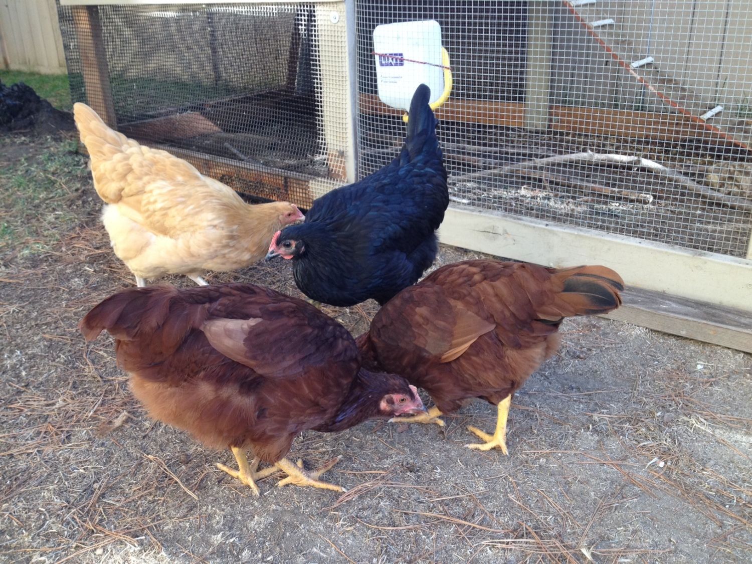 Our flock of 4, 2 RIR (or Production Red), 1 BO, and 1 Australorp are getting close to 16 weeks old, and just yesterday, I heard an alarming sounds almost like a cocka.... it was quite short but pretty loud, and I think it was from Heaven, the Australorp. Though I am also worried about Red, with her new tail feathers seems to be turning downwards...(last picture, front left). so now I start to worry again if we have any roos...