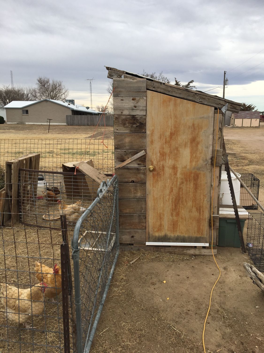 Pallets, fence posts, old cedar, tin scraps, metal scraps, old tires of various sizes, different types of fencing and so much more! I love the beautiful coops everyone has , but am working to make this habit as CHEAP as possible (i.e. we only buy chickens and feed)