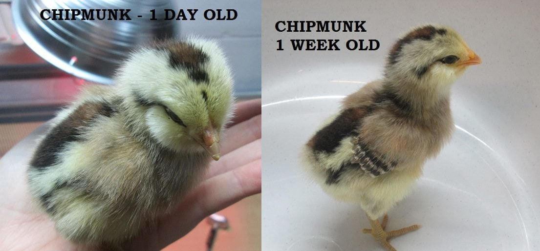 So chipmunk was named for her poofy cheeks! She is adorable and the only EE out of my three to get the poofs. She still has lighter legs than the other two EEs, but they are not as pink as on day 1.