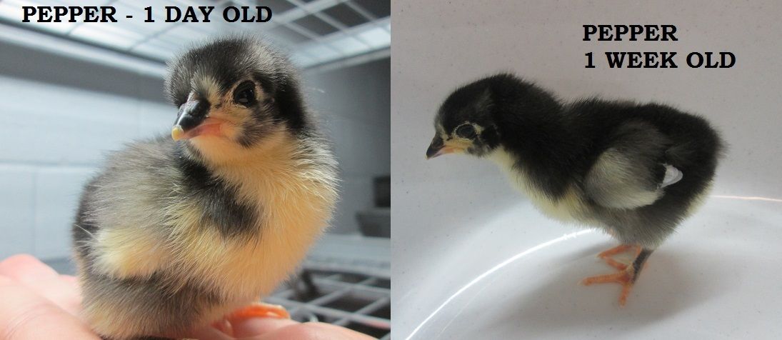 Pepper is precious! She is the tiniest out of the six and is still small at a week. She is getting her her dark legs in.