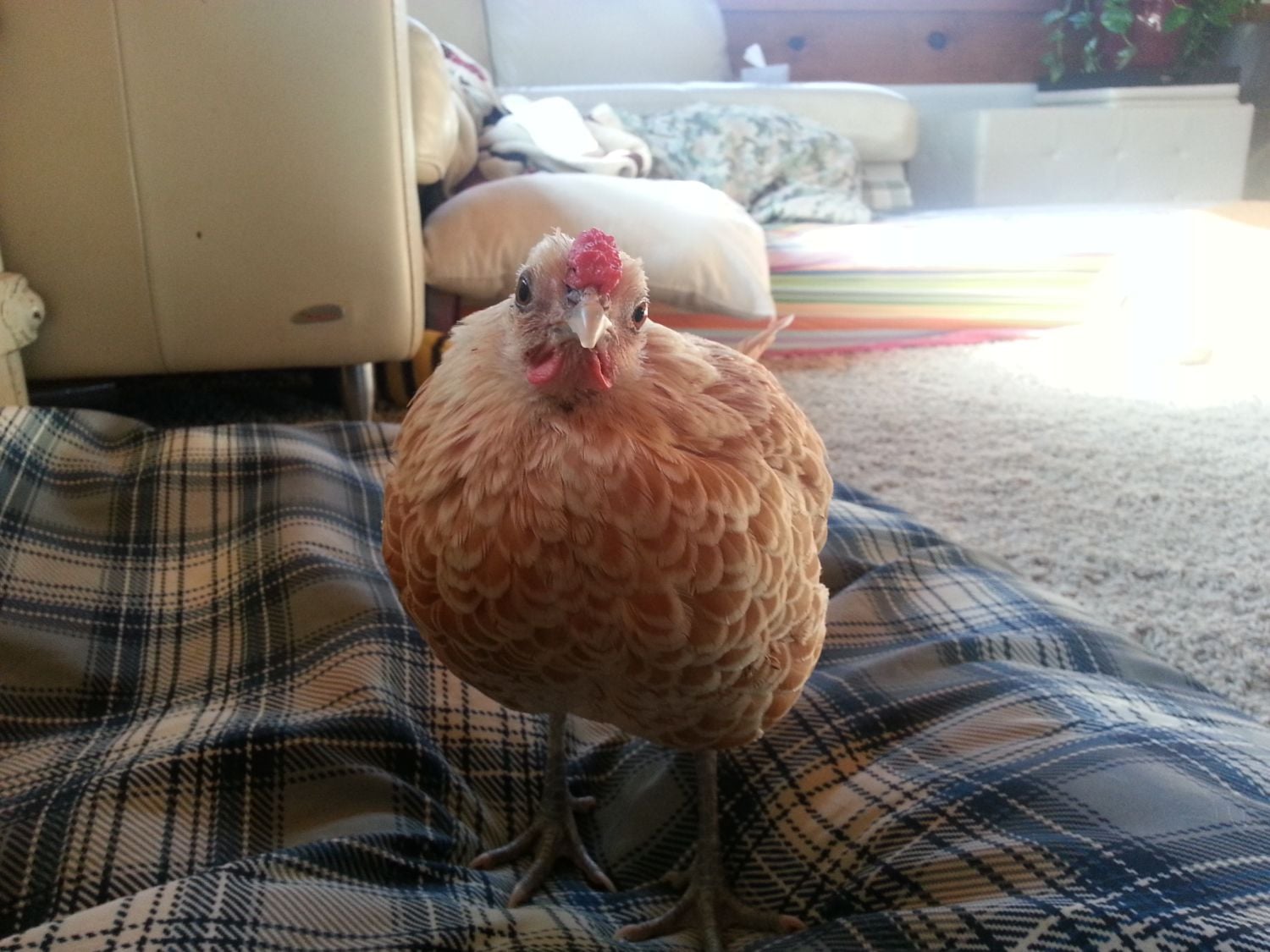 I wouldn't be too concerned b/c she still moves around the house, and eats/drinks. But I have noticed that she walks for a bit, then stops, closes her eyes, and sleeps standing up. She does this all day. I don't know if this is pain related, stress related, or what. She just isn't as active as her usual self. However, I can imagine that she is still sore, and stressed from her near death encounter with the hawk.