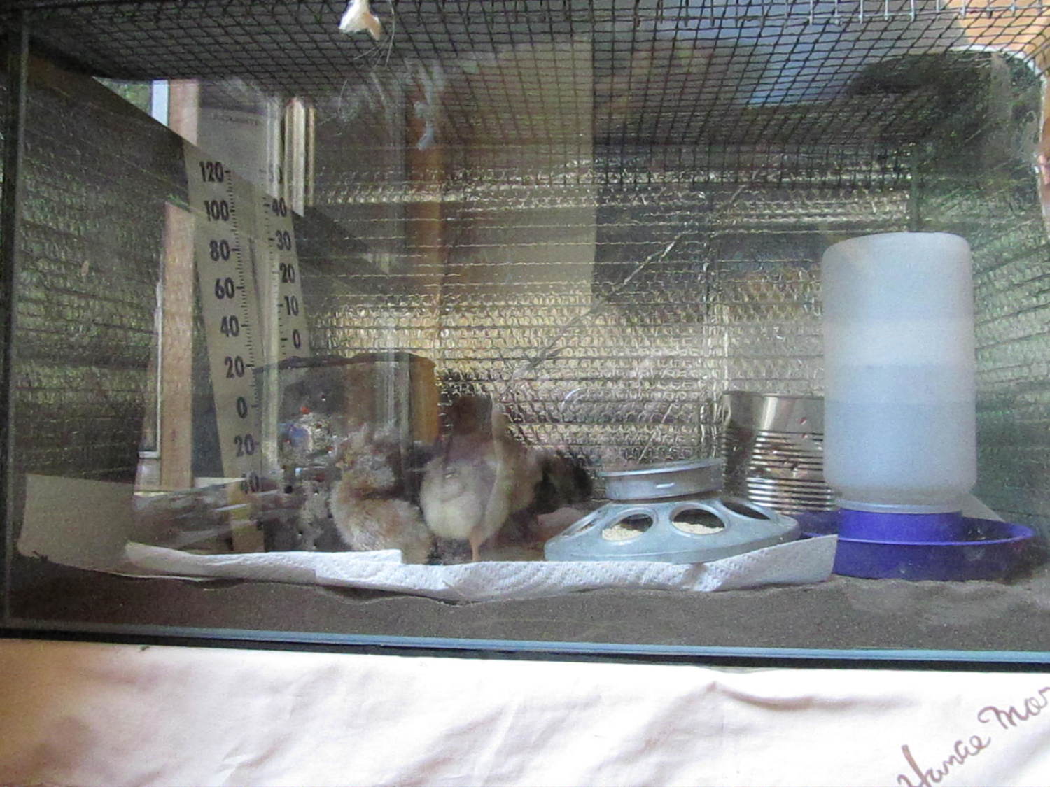 paper towels are down for the new chicks until they are eating well.