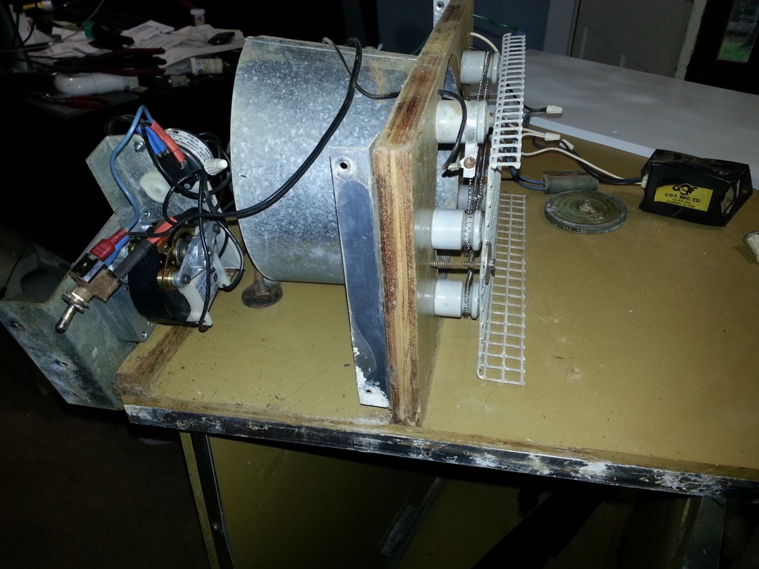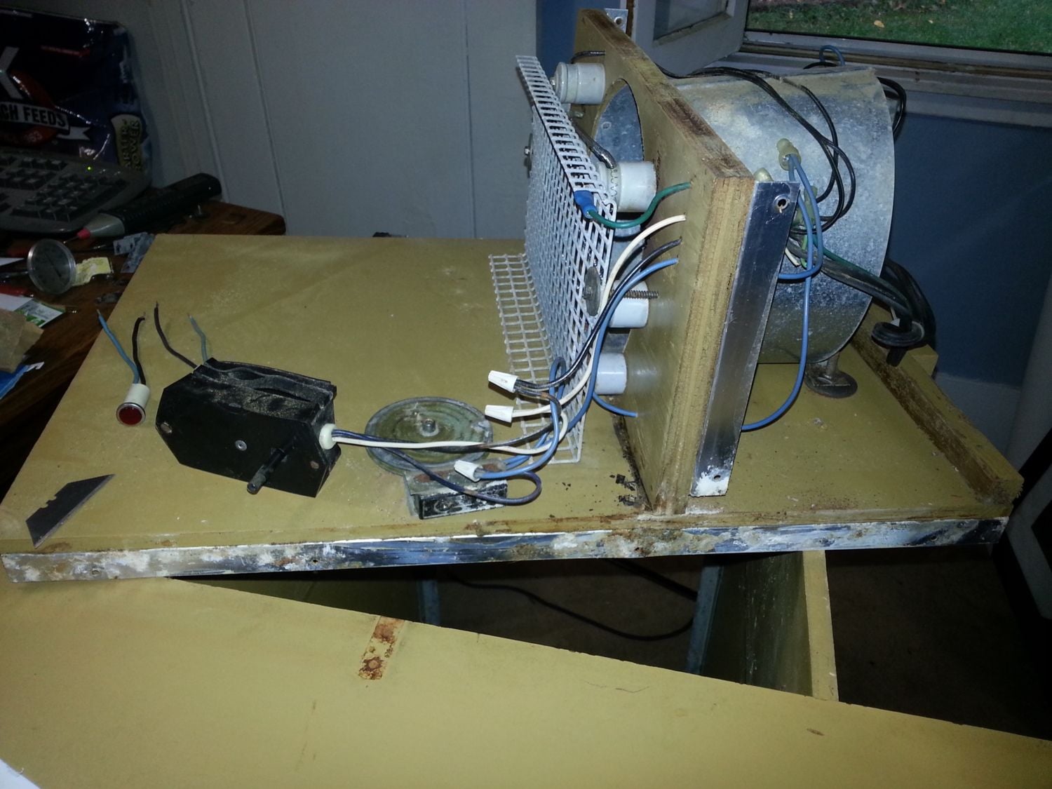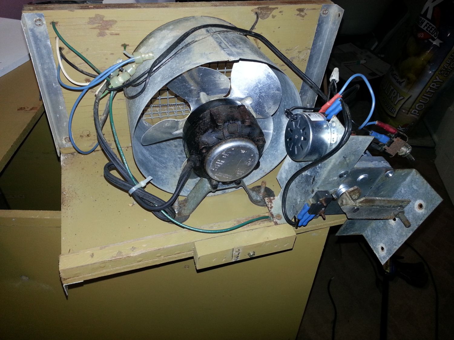 I had the good fortune to purchase a dead GQF 1402 over the summer. It isn't dated, but I believe it was manufactured around 1997. The turner didn't work, the incubator wouldn't heat up, and the electronic controller had overheated and scorched the inside top of the cabinet and warped the thermostat housing. It was rusty, crusty, and cheap. It came with all the trays, and an active rodent nest as well. It was just what I was looking for.