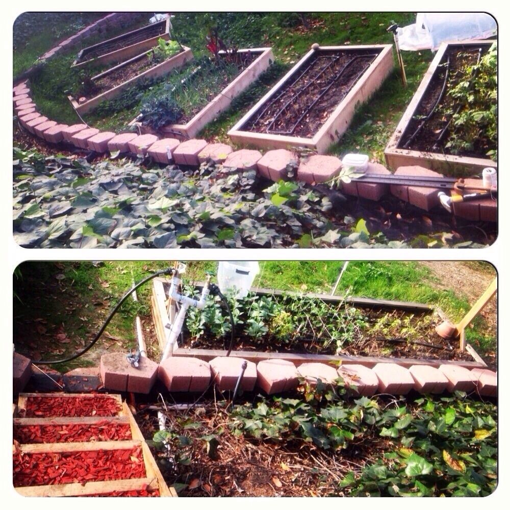 We grow lots of stuff, most of which are heirloom organic varieties, and got huge yields of kale, spinach, shingiku (Asian chrysanthemum green also called tong-oh), parsnips, carrots, lettuces, peas, fava beans, potatoes chard and beets from seeds we sowed back in November. However, since we got the chickens, they've been decimating my spring/summer plantings. After we finish the coop, we're going to figure out how to block of access to the beds. Right now, I'm also planting sweet potatoes and potatoes in a trench where the hill meets the retaining wall. We also have a landscaped bade along the fence which we've turned into an area where we've planted blackberries, raspberries and melons/ squashes.The property already had jujube and persimmon trees which both bear fruits prolifically. We picked at least 900 persimmons this past Fall!