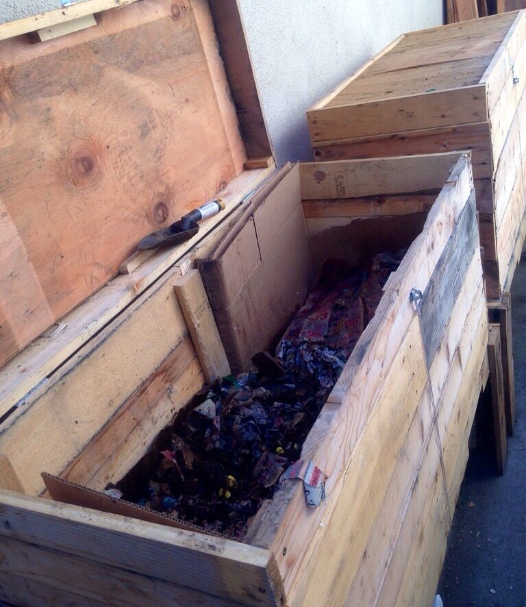 each box is about 5' W x 2' D x 2.5' H and they are on these stands so that I don't have to bend to tend to the bins. It also helps keep ants away since I just put DE around the legs of the stand. (We have a horrible infestation of Argentine ants here in SoCal.) I can also catch the leachate under the bins.I used to be rural. Then at least county. The city built up around us, and now we were annexed into city.
