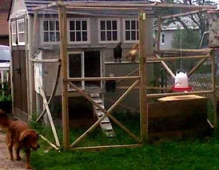 First incarnation. Repurposed rabbit hutch for a nesting box.
