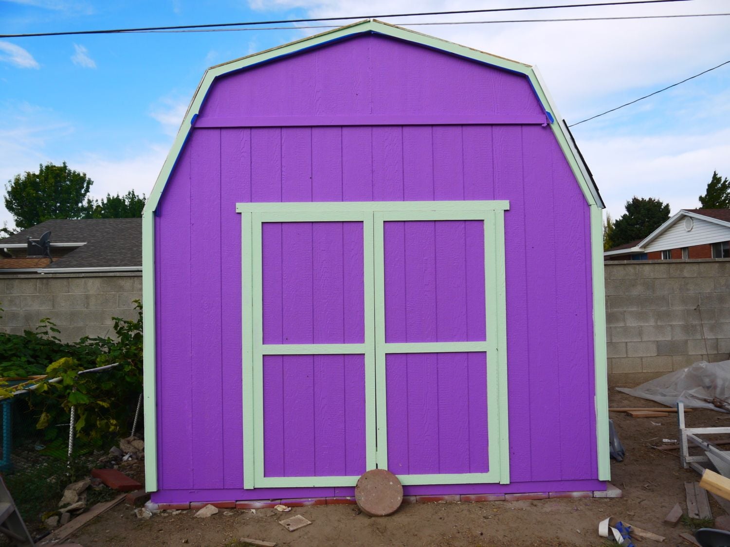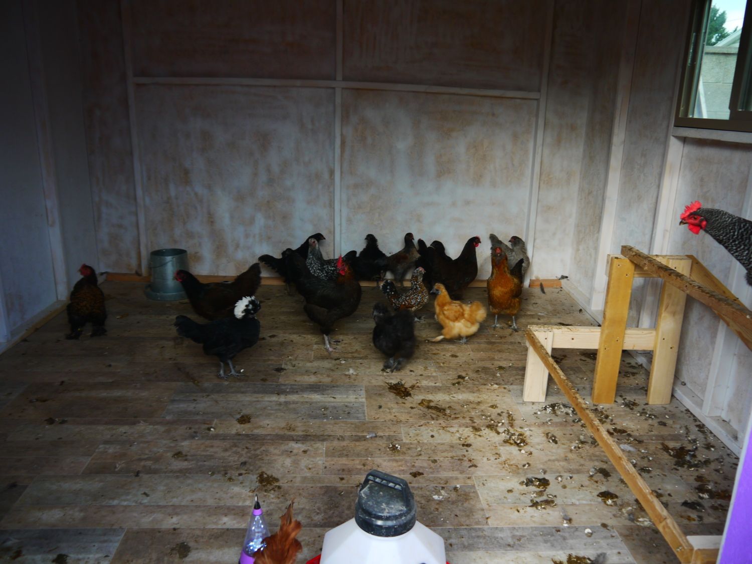 Congrats on eveyones new eggs, Cluckingham Palace is almost done. Finishing roofing today and waiting for pain to dry on nest boxes, Chickens spent last night in the new coop. They were not thrilled. I waited until they were all in the old coops then moved them to the new coop and put them on perches. I put a lantern in there overnight so it would not be completely dark, Here are some pictures The trim on the front is Lime Green doesn't really show up to well but it really is pretty