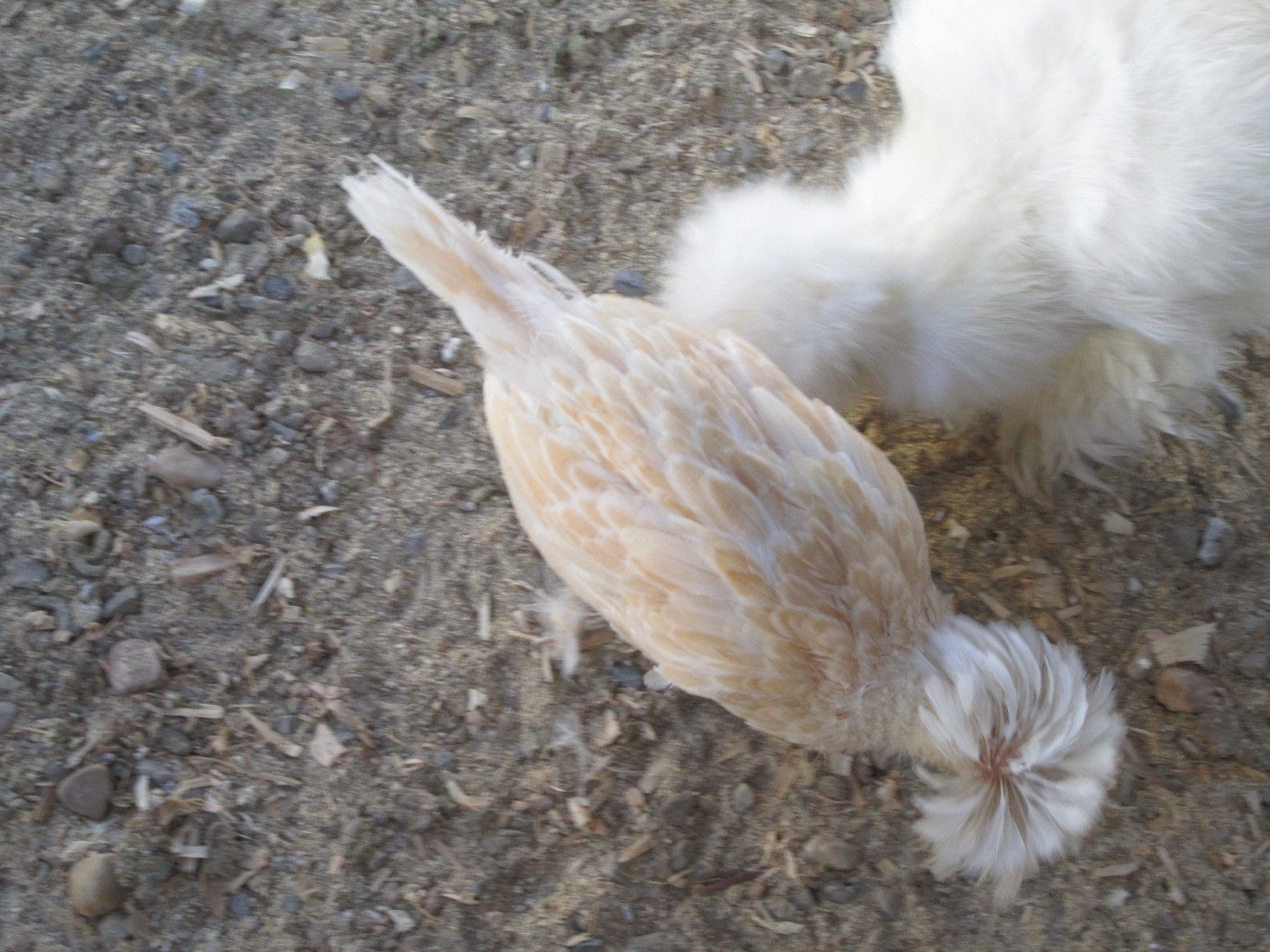 Cotton's face off, the white Silkie. She didn't get as messy this time, but this Buff girl did!