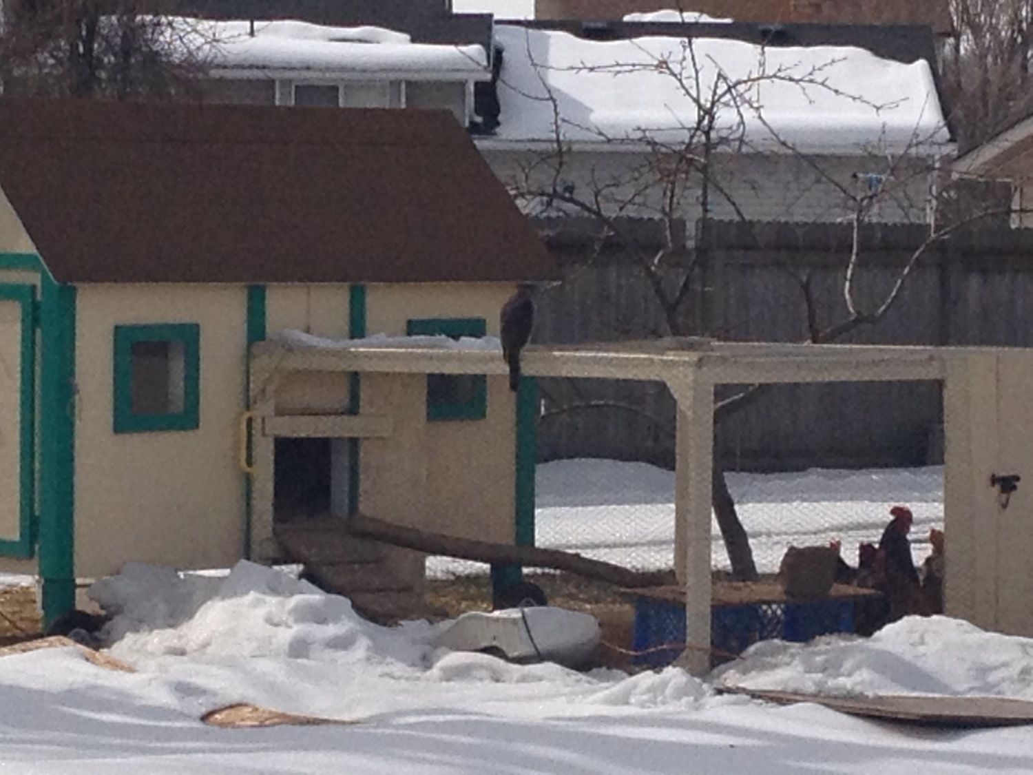It did eventually decide that I was getting too close. I have a series of pictures that I took getting closer and closer. The first was from my car until I was about 50 feet from it (the first picture that I posted of it). It took off after that picture. Sphinx, I was so glad that I made the DH put chicken wire across the top of the run. I have run around the run a few times since getting home to see if there are any holes and to count chickens.WOAH! That is a bold hawk! Did it take off when you came close?