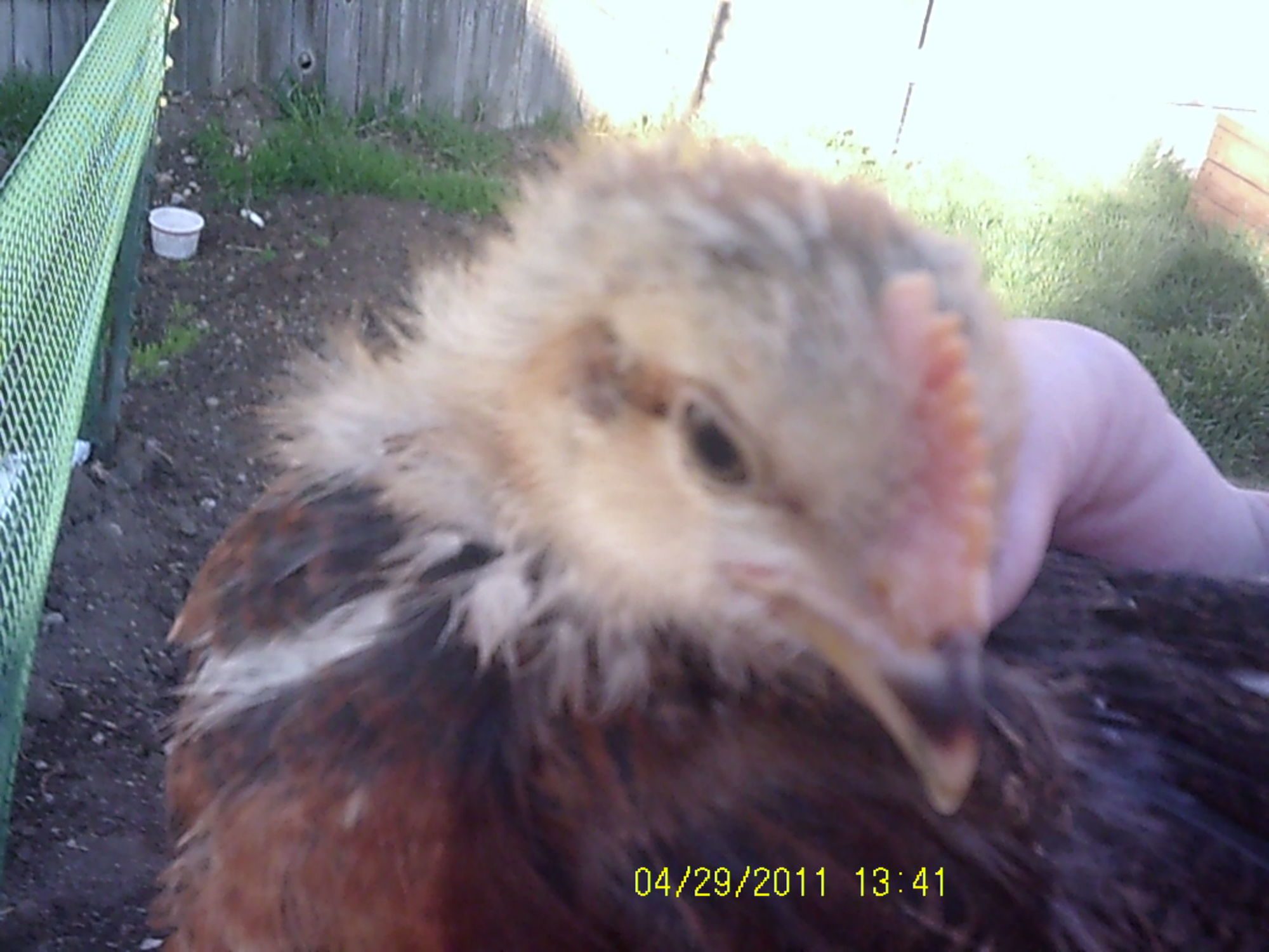 I have been letting them out to free range and the rooster is really protective of her. The little bugger has an attitude though and just chased Jessi into the house. So I ran out and chased him back to his coop. He knows not to mess with me.