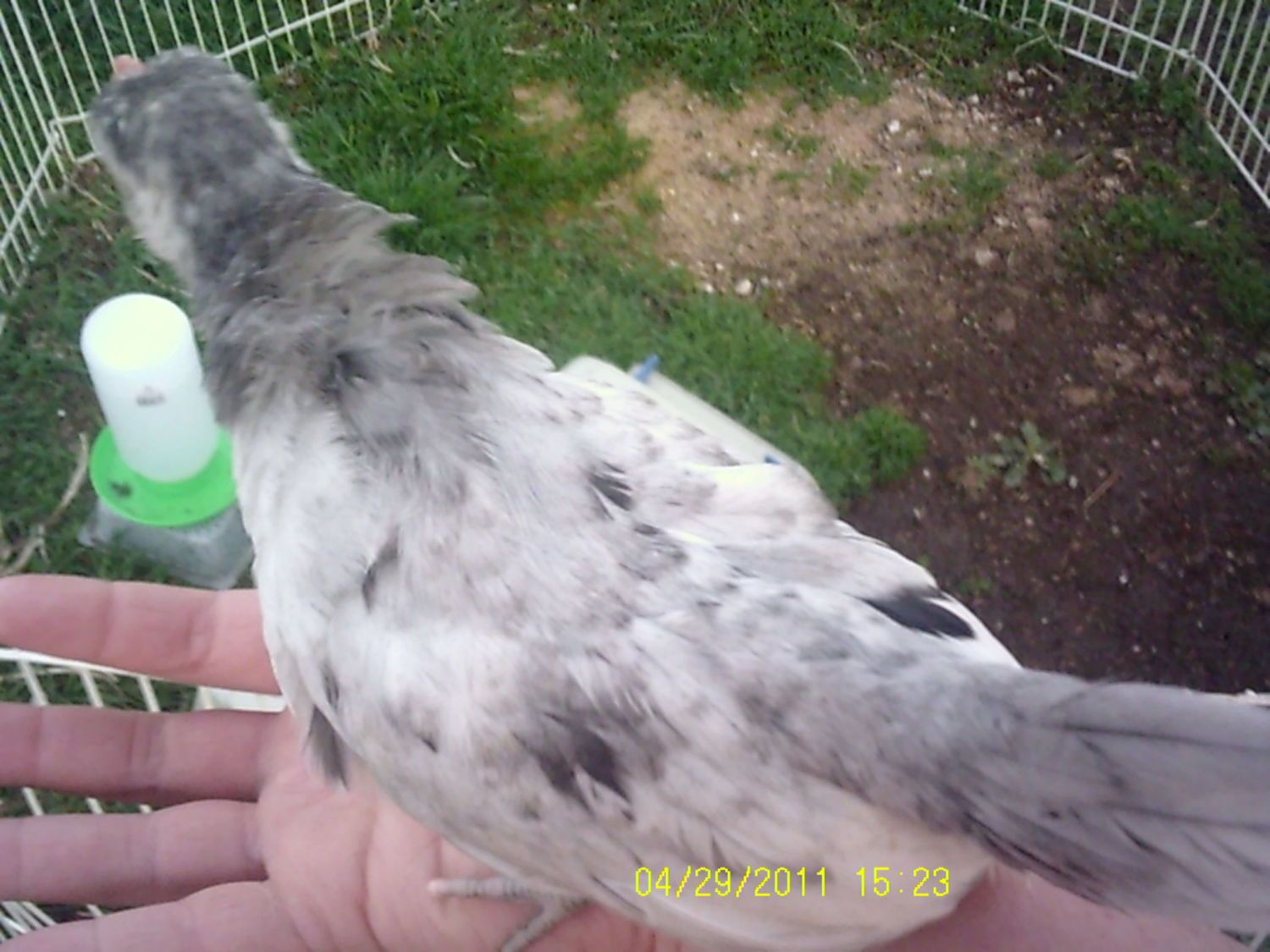 I have been letting them out to free range and the rooster is really protective of her. The little bugger has an attitude though and just chased Jessi into the house. So I ran out and chased him back to his coop. He knows not to mess with me.
