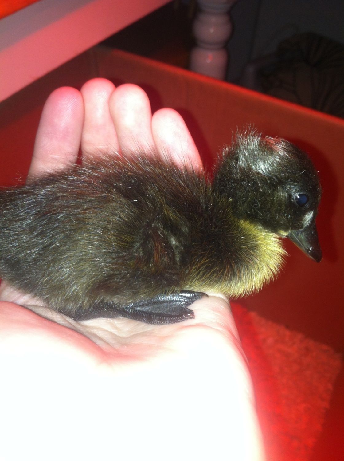 Yeah it's been really funny, she follows me around everywhere already. We have about 5-9 (bad packaging when shipped) Appleyard ducks hatching in 2 weeks as well. Should be really fun!