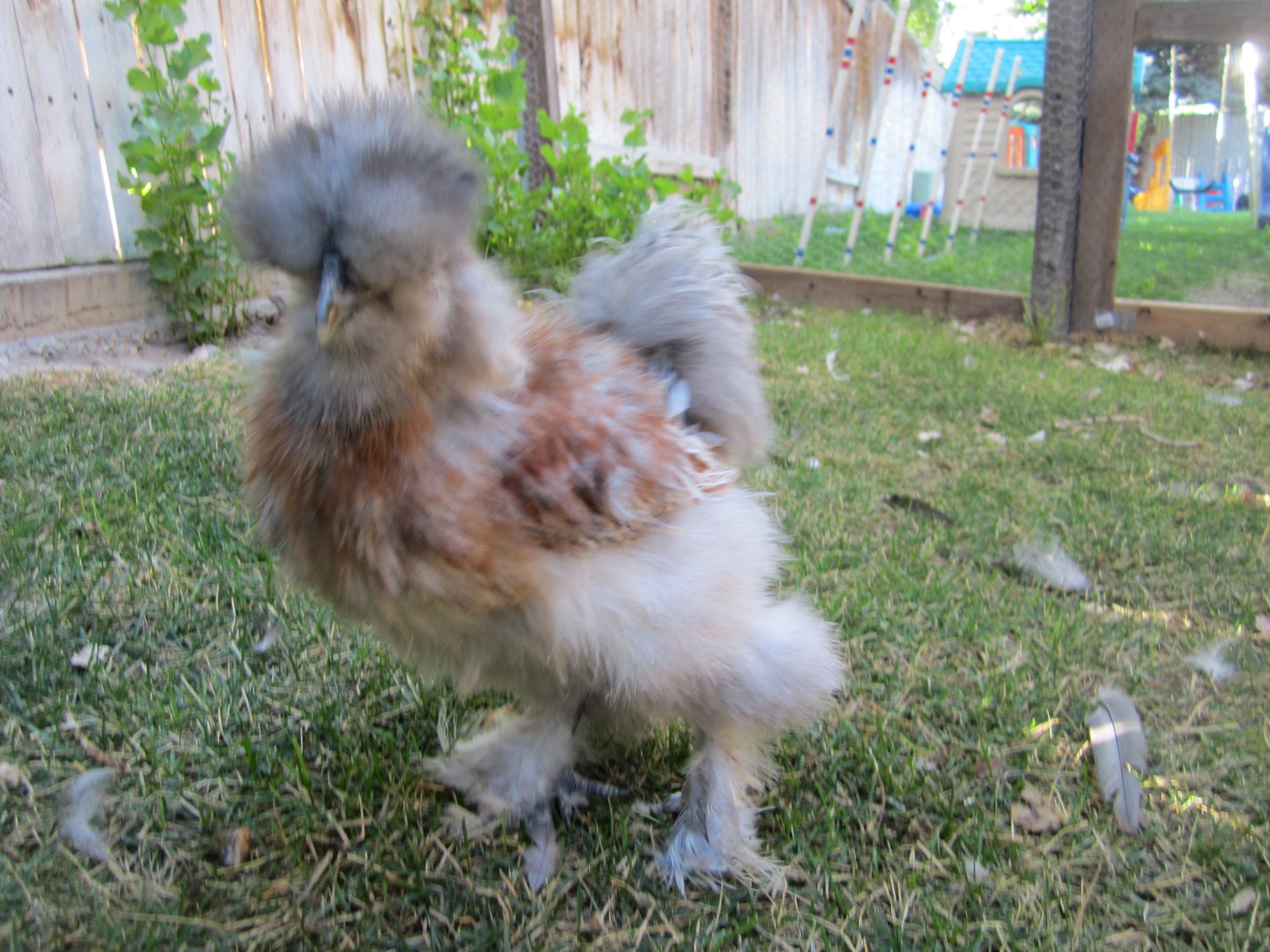 Anyone interested in a Silkie Roo? At least I think this little guy is a rooster. I got him from Themadchicken~Gary. Almost 13 weeks old. He is very sweet, you can just walk right over and pick him up. Hasn't started crowing or anything. I love his crazy colors. I'm going to miss him a lot. But I can't keep Roosters, so I'm going to start looking for a great home for him.