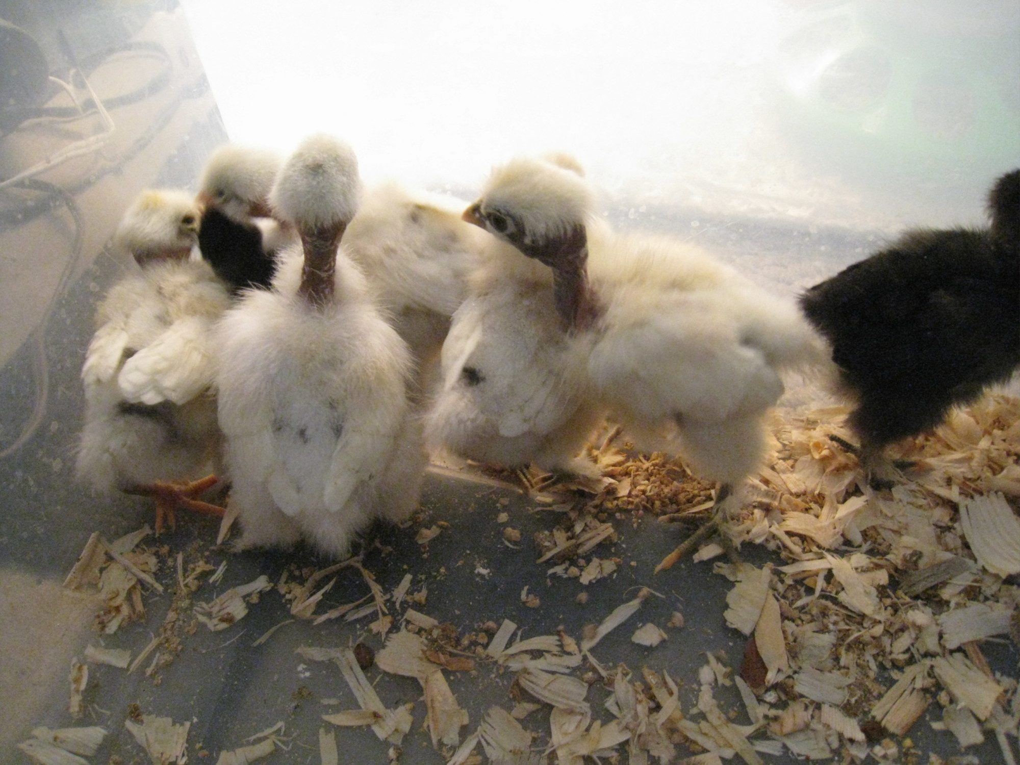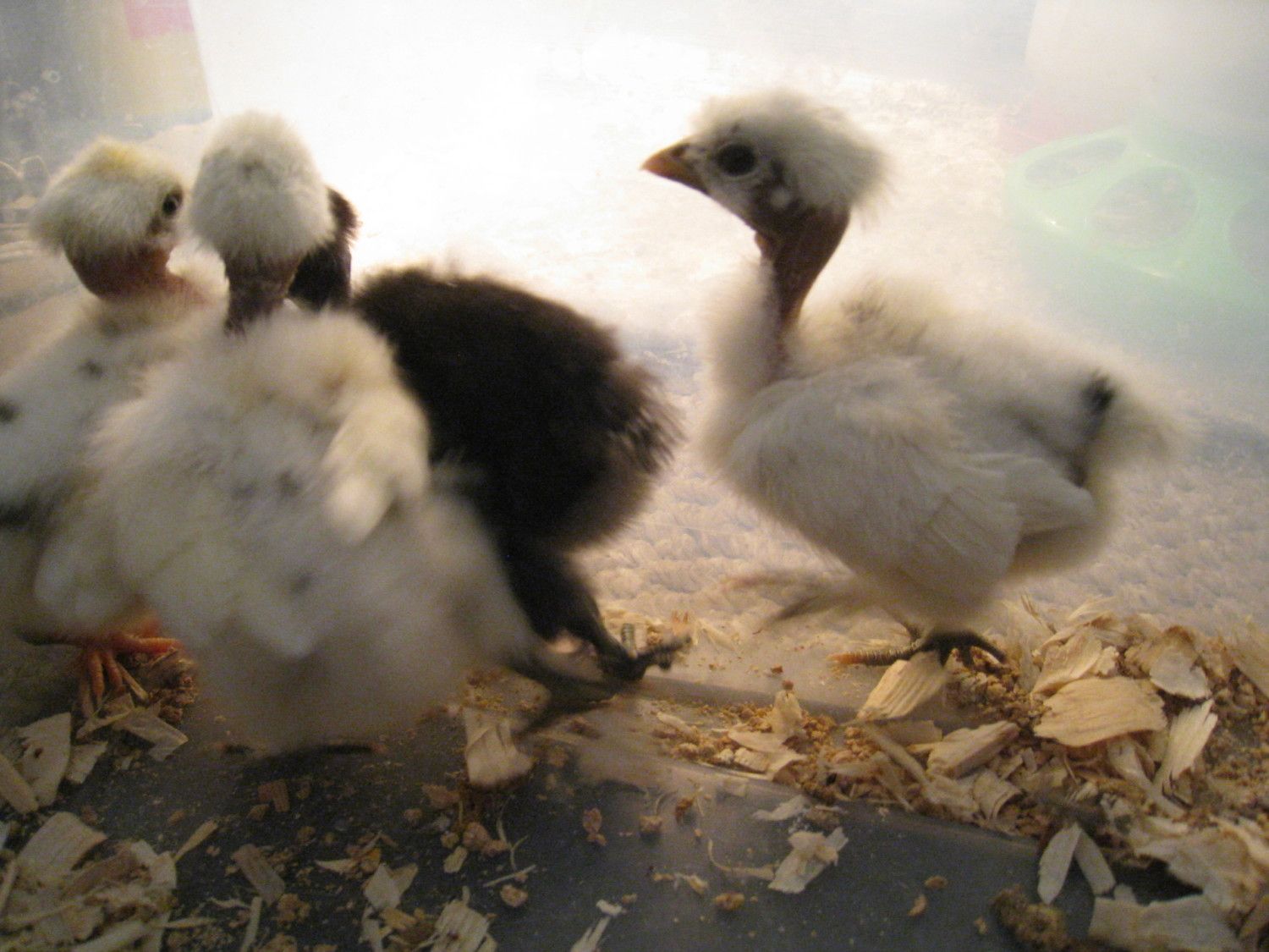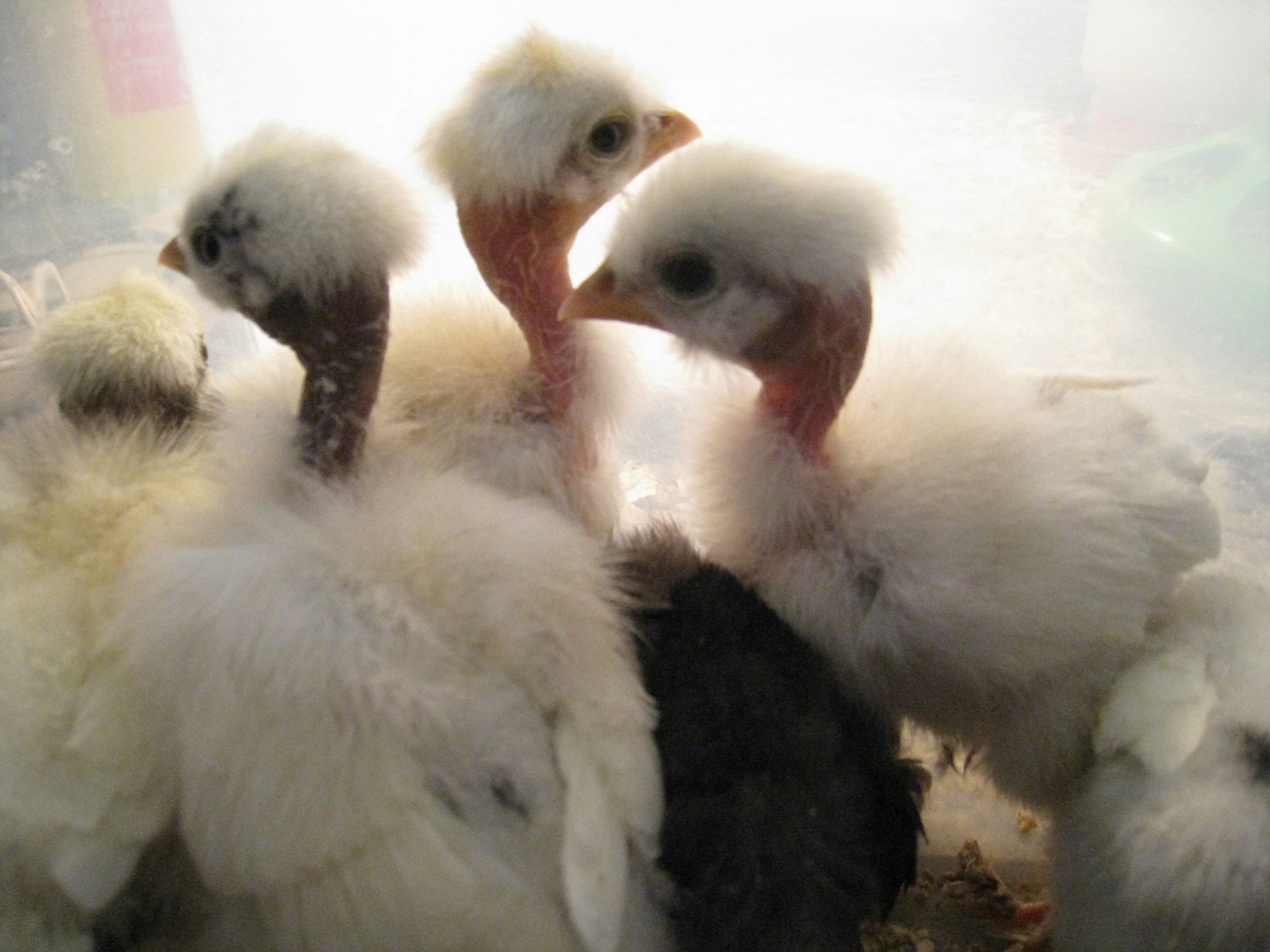 Love these pics!!!Here ya go! They have more spots than the pics show...some on wings and bellies and heads. Pretty cute! They are mostly starting to turn blackish skinned so I think they may end up looking more show girly than Turken-nyStill can't tell if the feathers will be silkied or regular. Funny little critters! Black eyes. The rest are going to Brandi...unless I keep one, I might, trying to talk myself out of keeping chicks but they are just so cute.!![]()