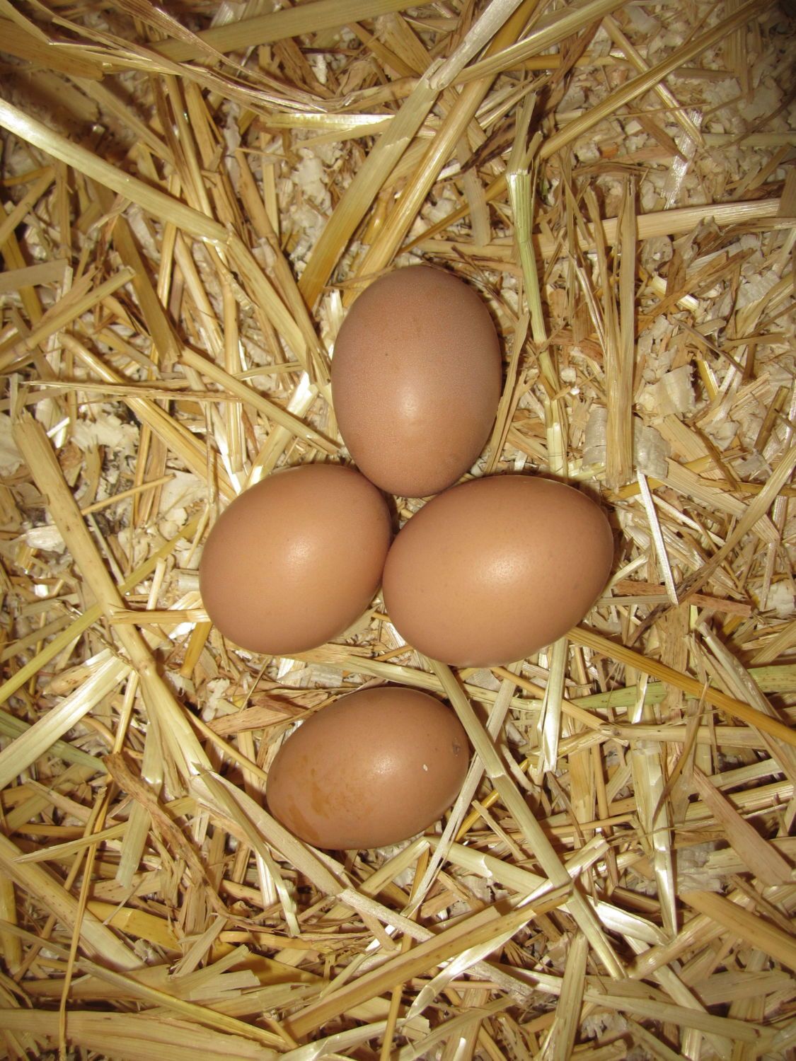 Anyways in the middle of one pallet, where I couldn't not have seen into, they had to go through molds to get to it are 7, yes 7 small brown eggs. Little devils! I'm guessing that they are either the Bantam Cochin who is 5 months old or the RIR that is 4 months old. But I don't know if the RIR could have gotten in there. And they are tiny. I will have to take a photo, right now they are in the nest boxes for all the girls to see. I even put the RIR and the Cochin in the box with the eggs in hopes that it dawns on them.