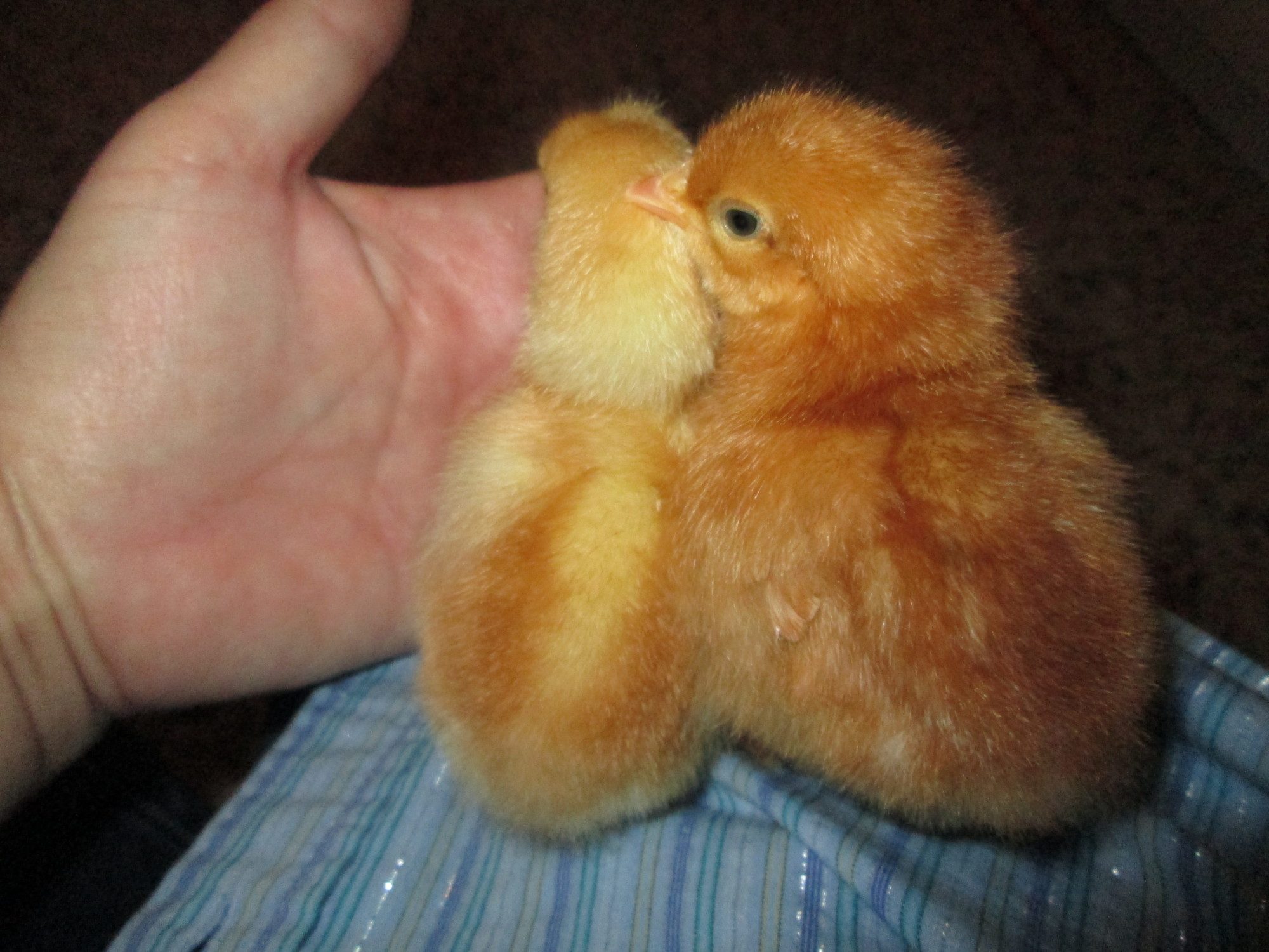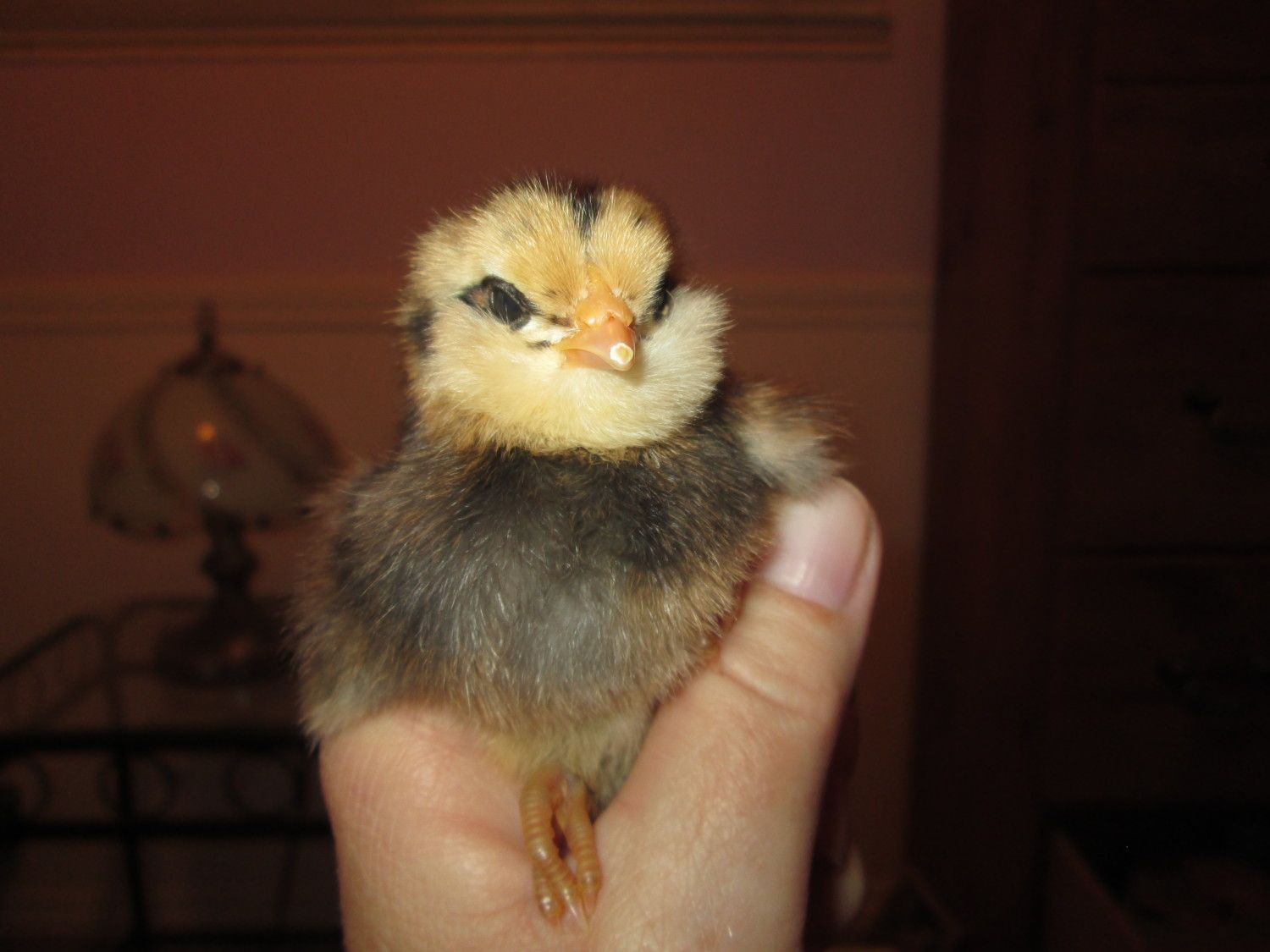 I did buy 2 of those fluffy faced EE's, and barred Rocks, and GSL's (RIR is close!) Oh and lastly one BSL. Mine is old this year so I wanted another to replace her. So 7 chicks, 4 breeds.I remember bargain used that picture of yours to advertise, it was such an adorable picture with the pink fabric, that is why I saved it--i used it for my desktop background for awhile