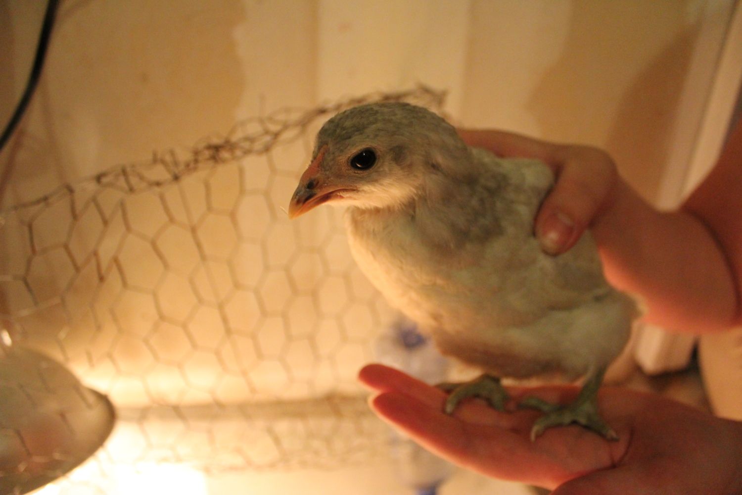 It's supposed to be a lavender orpington, 8 weeks old. Quite shy but I don't think it was handled much. It probably thinks it's in the looney bin given the behavior of the others.