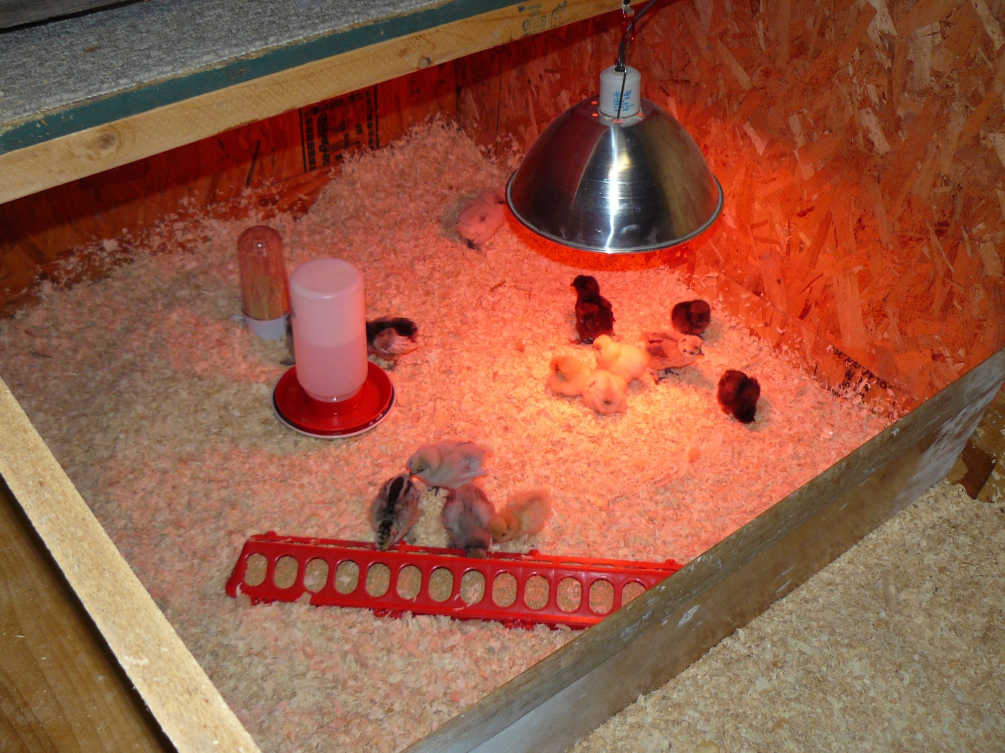 Here's the brooder set up I did tonight in our small shed. I made the new babies pen much bigger instead of using the kiddie pool I originally did, so that they had even more room to get away from the heat. Their grow pen is actually twice this size but I put the board up for now while they are still tiny so that they dont get lost or something lol then i'll open it back up in a few weeks. I screwed the heat lamp below the wood shelf, and its about a foot above the bedding. And its a 85watt bulb. Then I set up the other side of the pen for the older babies without a light and added the babies I got from you Cynthia to those ones. I sat in there with them for over an hour with the door & window closed to see how hot it felt and I was in a t-shirt and was feeling really toasty (But..I couldve been feeling warm cause of being preg haha). But it did feel pretty warm in there. So I dont know if thats a good thing or not for the babies..? I opened the window about halfway thinking that should offset it a little bit but I am hoping it wont be baking in there over night lol. I could always swap the bulb for an ordinary 70watt if you think it might be plenty in there. The shed is small like 12x12 and is insulated so its going to retain heat really well in there. Just want to make sure everything looks good, and both the tiny & older ones arent going to be too cold or too warm..