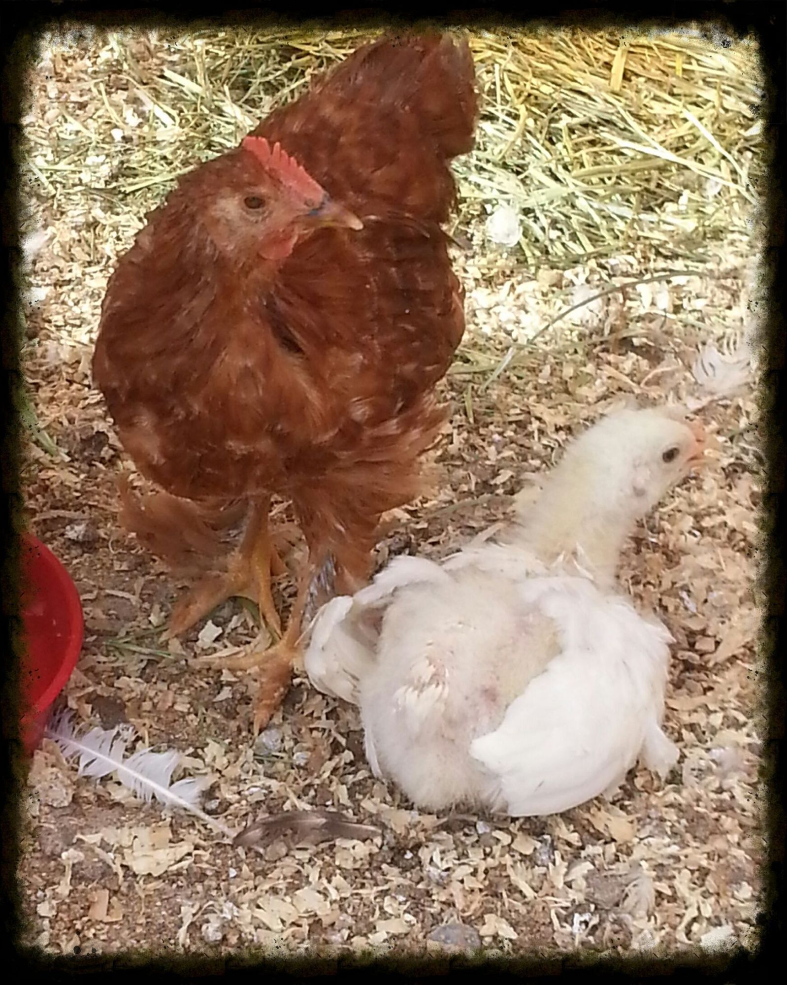 I put her (fingers crossed *her*) in with them till I could get stuff unloaded. I was happy to see they hit it right off! She isn't quite as feathered and so if it gets colder tonight I'll bring the two in the house. They will get their own honeymoon suite when I can find a place for Thelma & Louise.