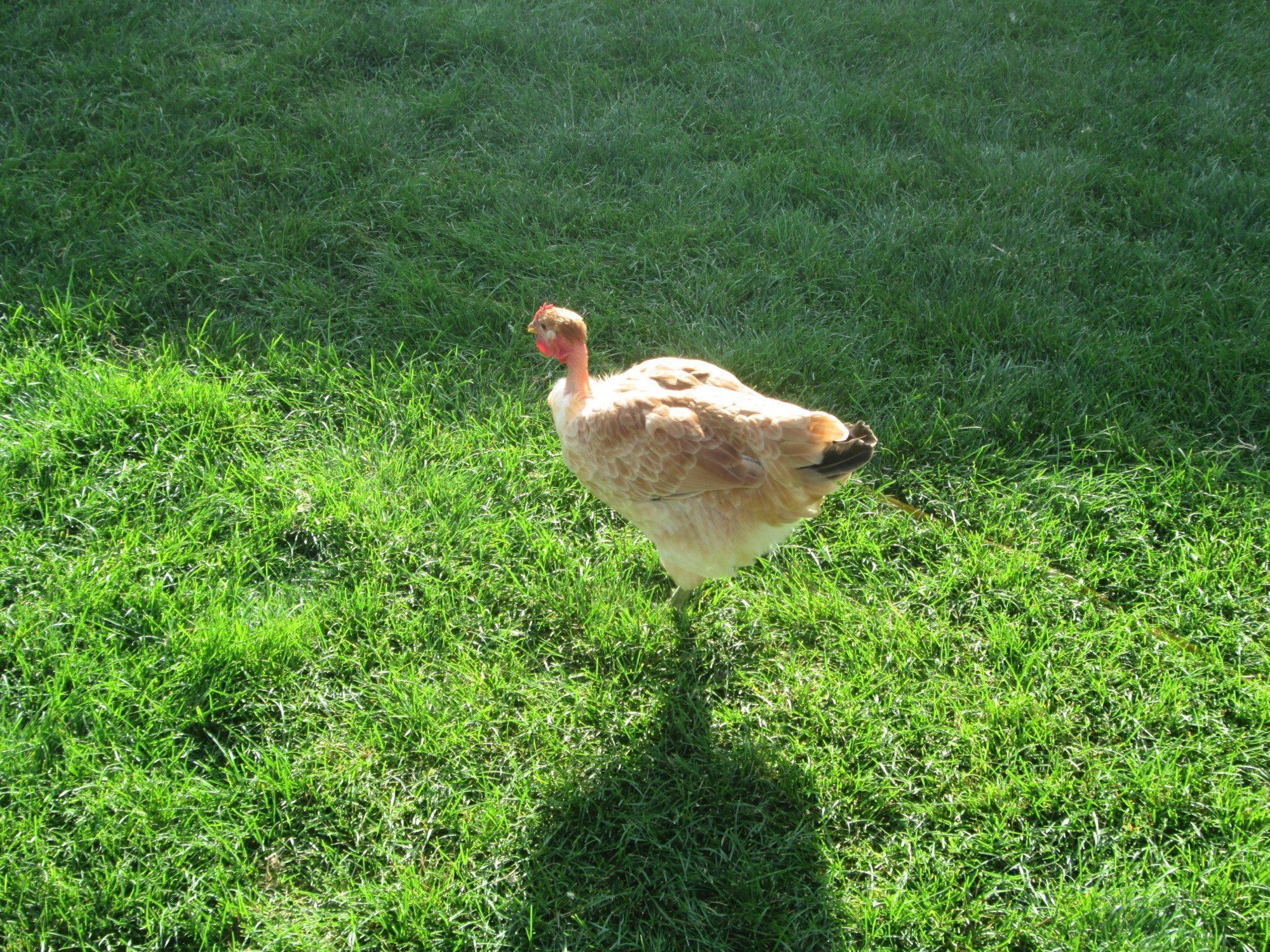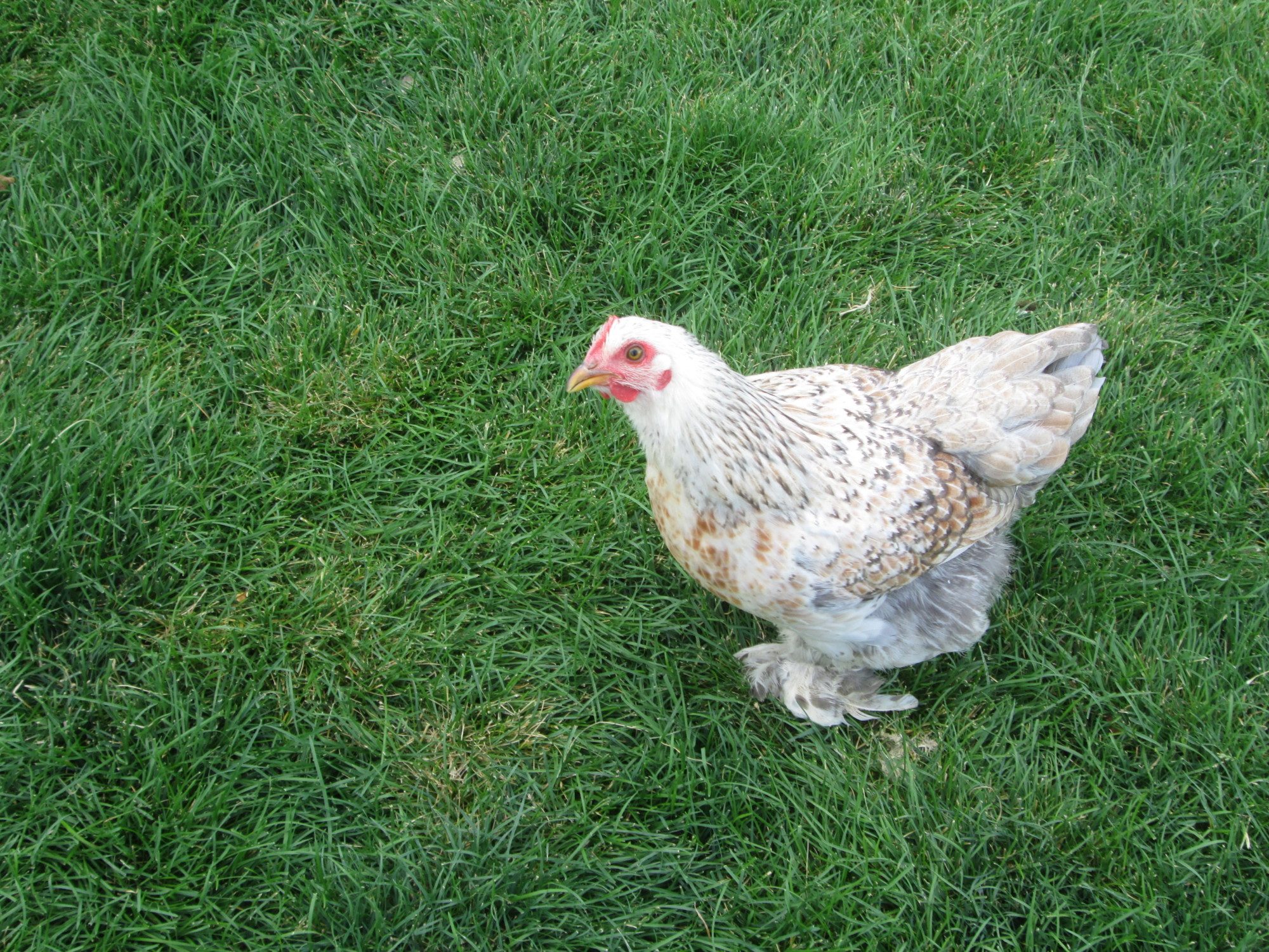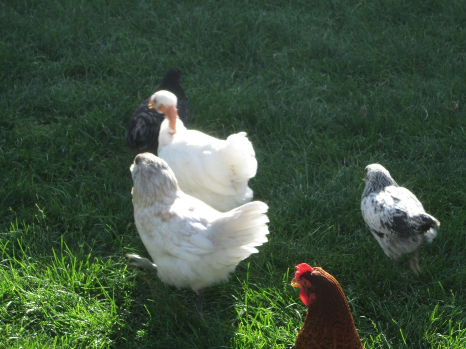 In the continuing sage of Rooster Cogburn, I've a few new photos for pfrosty and family. And an interesting event which transpired this evening. We were giving some fresh uncooked corn to the birds this evening. RC presided over the event in his usual majestic style. When all of a sudden, a stupid dog came through the yard, we are just sitting out there on the lawn, enjoying watching the birds, and before we could even say a word… RC went over and stood that mutt down. Amazing, He is doing his job, in first class style. We just love him. I am a very proud keeper of what has turned out to be a wonderful adoption into our flock of a first class Barred Rock roo.