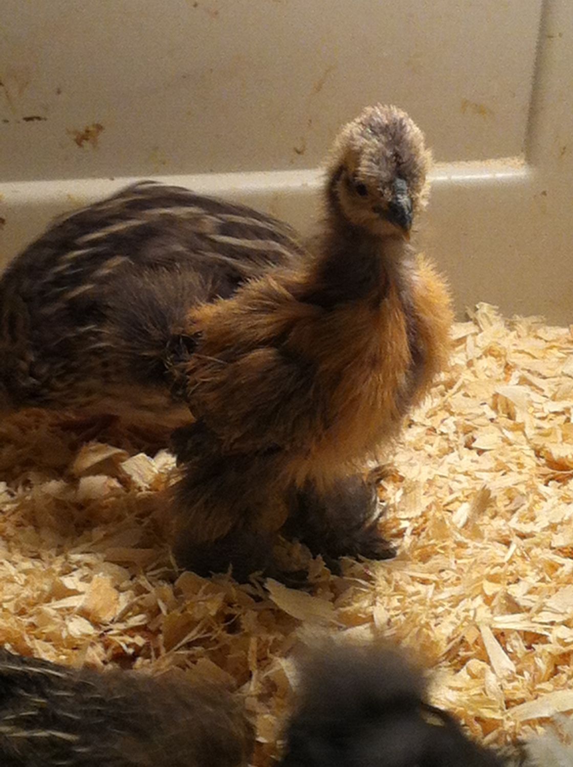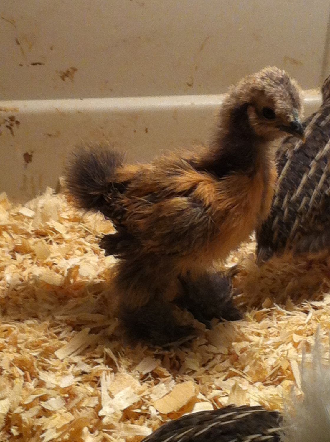 That boy you got from me is getting handsome!  It will be interesting to see what that silver around the neck does, and if any more shows up on the body later.   I love it in a Silkie when the legs are short .. so the feathering meets the body real well.  Looks like that's what this guys does.