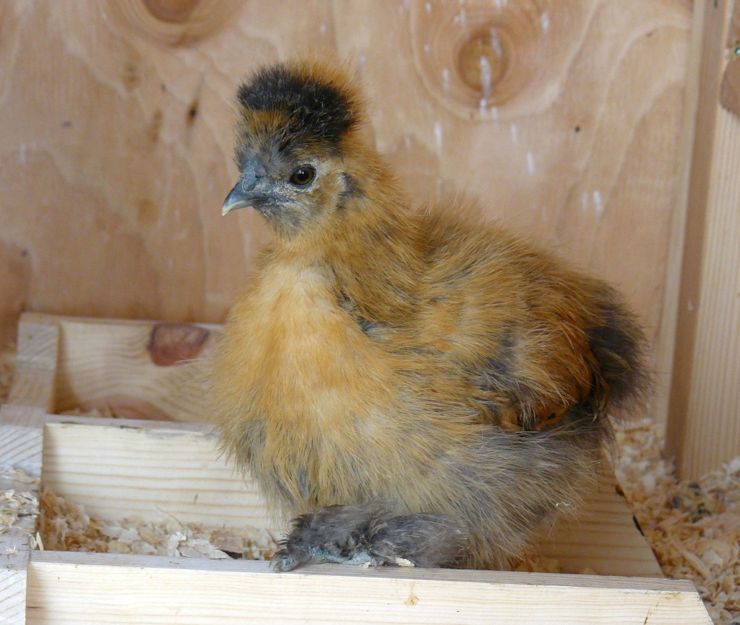 Nice looking chicks. I love the beard and fluff on that black one. Just curious but do you still have the one that came from me? I have eggs hatching out in the coops today and through the night and i see a couple that look like that one. One is really chipmunk striped. If you do can you post a picture so i might have a better idea what they might look like.I am a little concerned about the three hens that hatched chicks after Lisa's experience. But two of them raised three chicks together so maybe it will be ok.