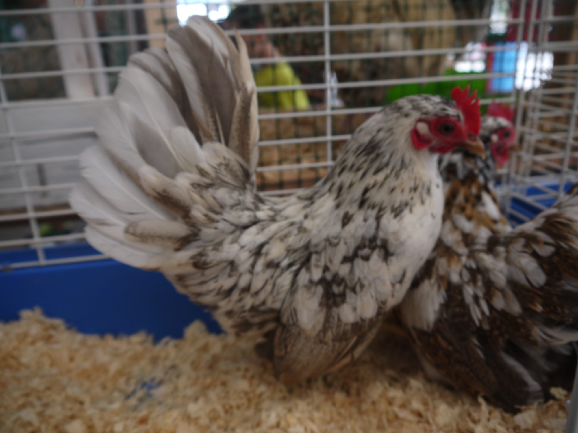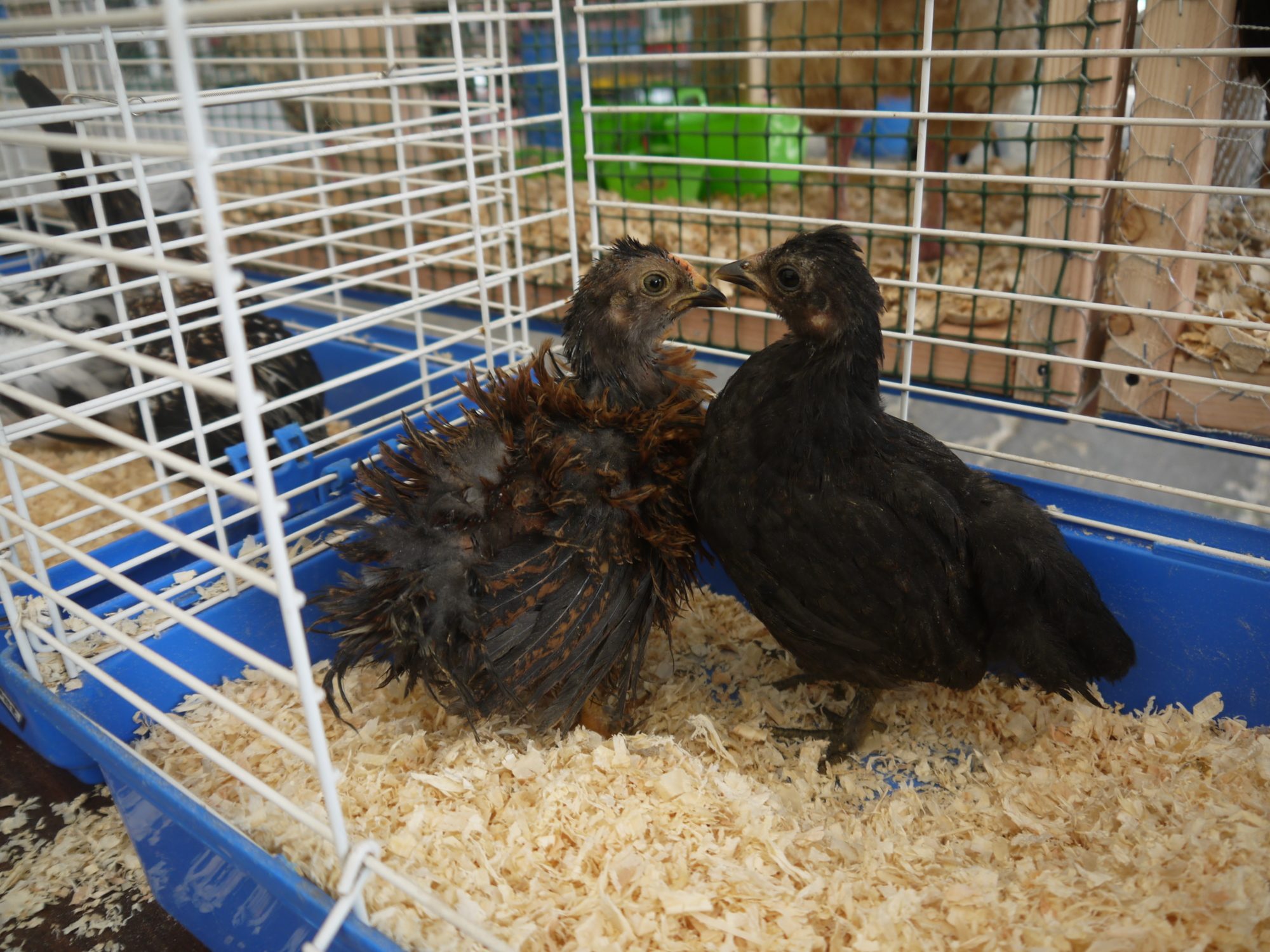 There is definitely a good side to that...although the cages are not uniform and not as eye appealing, the spread of germs and bugs is a lot less likely...and at least you know your birds have food and water this way. I ended up feeding mine here in Logan just to make sure they were getting enough, the water stayed full for the most part but the handfuls or scratch they got on the floor of their cage was not enough. My Houdans was starving everytime and woofed down quite a bit of treats when I went in to see her. She even ate her own egg and it messed her hairdo up really bad. Ya they would make it through, but I want my babies to be content not stressed out lol! Poor things. Your friends serama's are very cute!