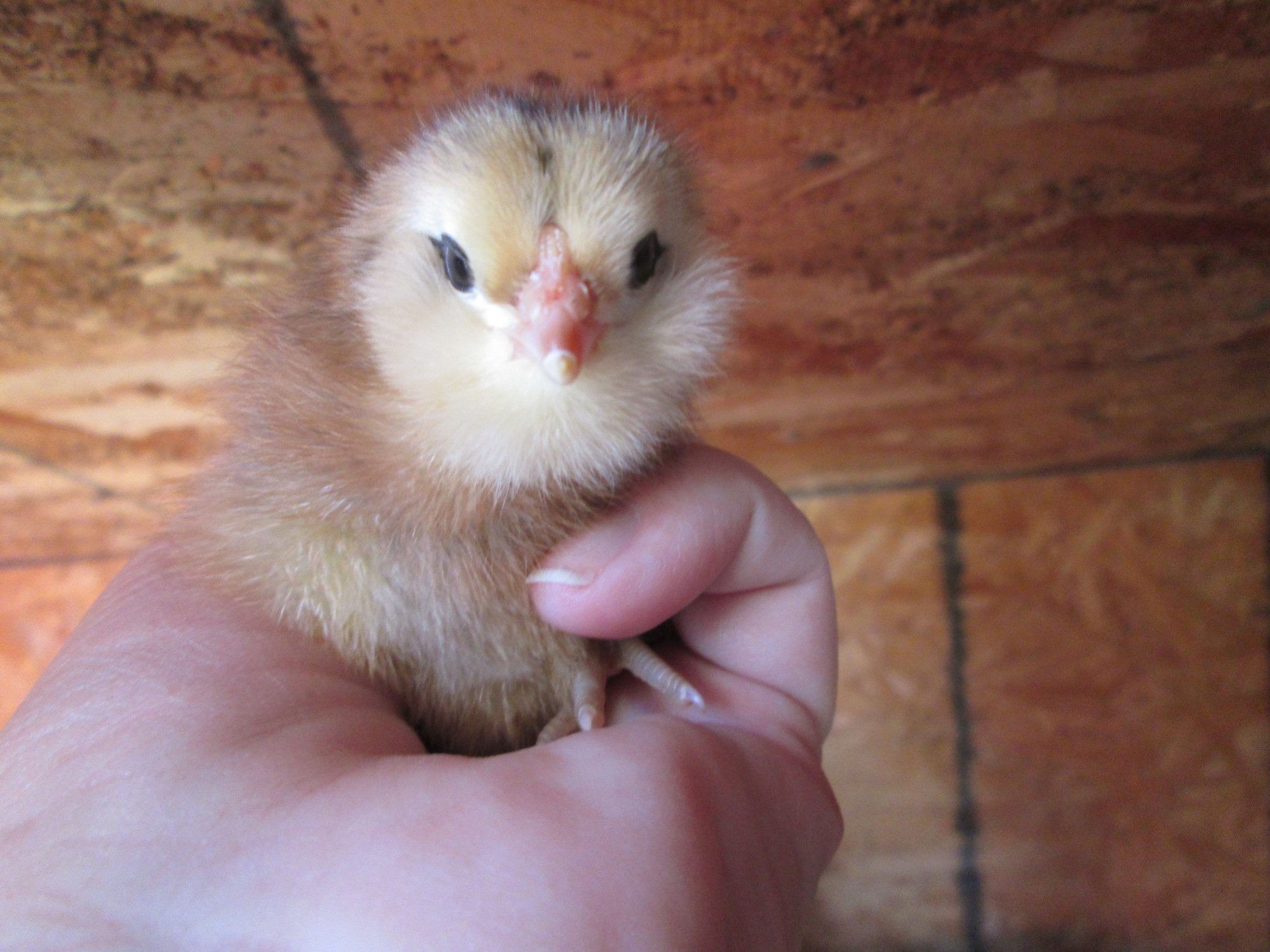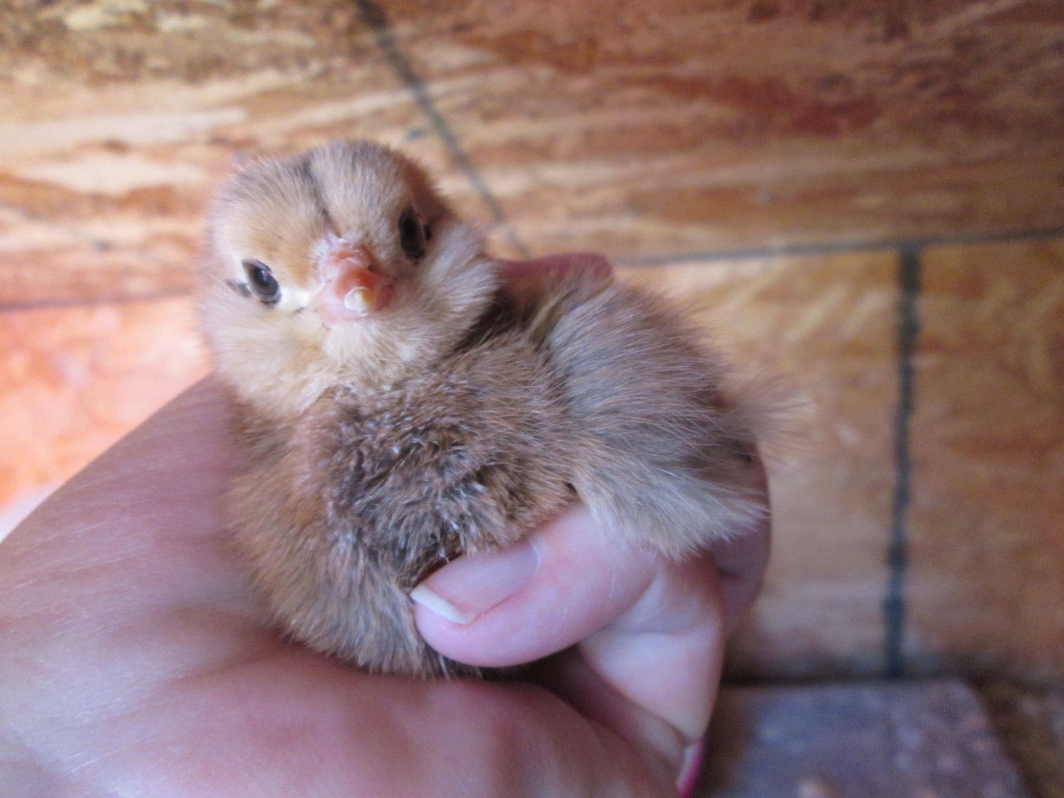 My tiny tots came. Wow! I had ordered 9, forgot I ordered a couple more than I thought. But, got 19! And most are pullets, I can tell. There are some little boys, but mostly pullets...one has a wry neck, and of course, it's the only Domique that I ordered. I get doubles of everything else but that one breed. Keeping it inside, giving it electrolytes, and it's in a cup in the sun. No brooder in the house. It's peeping, and active, but that neck and head is way back on it's back..they usually turn sideways.