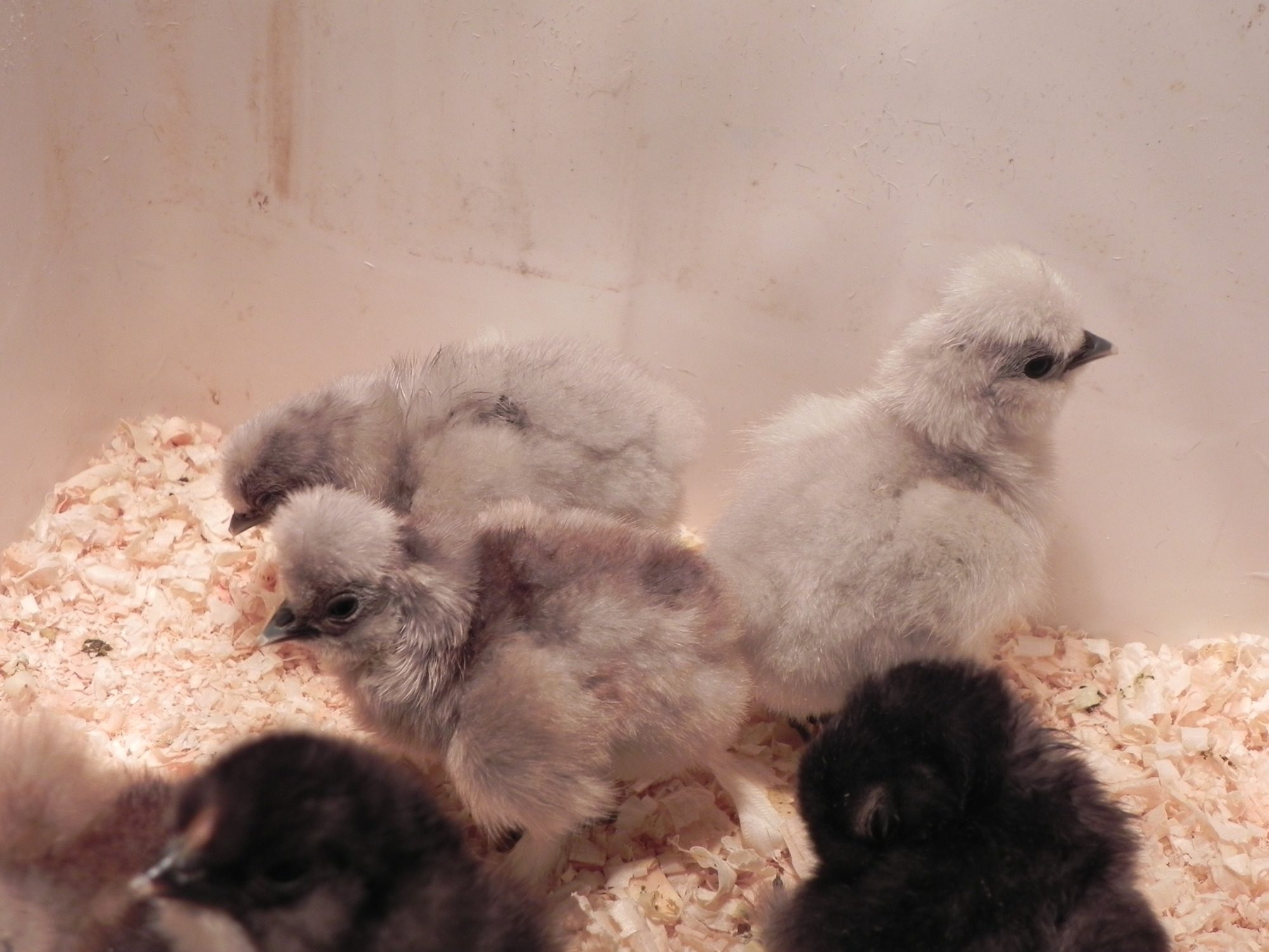 Oh my goodness these are adorable! Are they regular silkies and sizzles all mixed together so we don't know which is what till they feather? Do you know how incredibly tempting these are since I already have new chicks anyway, so whats one or two more lol. Are you giving them away or selling them? I am feeling awefully interested in all the ones with high domes especially the light bluish one. Is that lavender? Don't have that yet lol.