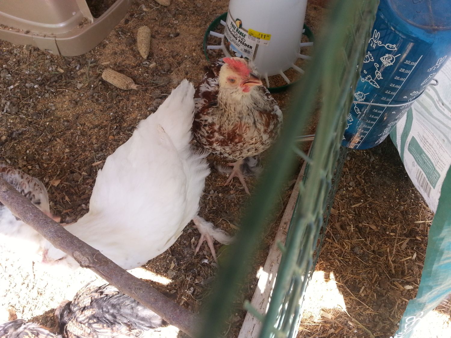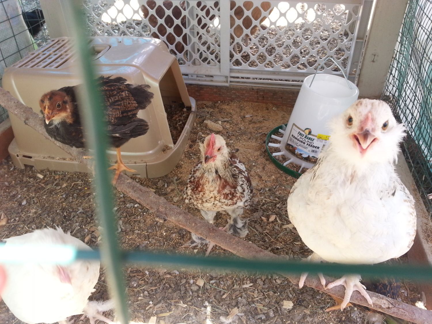 Marshmallow in the back and my little Sultan, Fluff is in the front.I got 4 EE pullets from cal ranch about a month ago. I think 2 of them are roos.Sid, this is the other EE I got at the same time from CAL Ranch as my rooster. Both were supposed to be pullets but only this one was. They both looked similar as chicks but the rooster did have a slight reddish tint that should have alerted me then but I was brand new. They are younger than my EEs I got at IFA but matured faster.