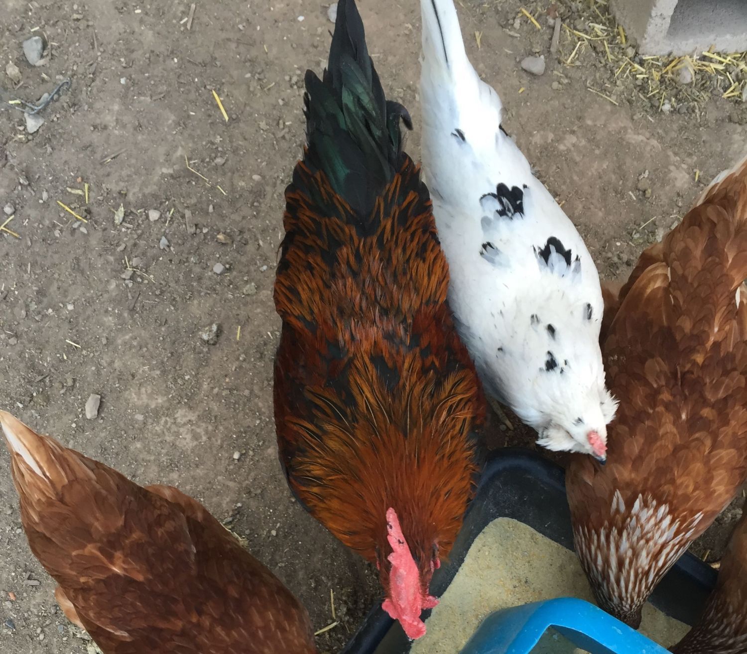 He eats like a pig. By 8-9 months they start to look pretty husky. And that crow....wow. Has your gotten the screaming thing yet? Seems like every Marans roo I've had starts this hooting thunderous throat gargling crow, cracks me up. I love that you love him! He came from ladycats and she has nice birds. I can't take credit for this one, he did not hatch from my lines, but had he been a she, things would be different! Hope he makes some nice babies, I would like to get a black or two from you eventually to add back in to my flock to keep the blue nice and dark. My FBCM source in Idaho is not doing FBCM anymore, sad sad day!Is it just me or do Blue Copper Marans seem bigger on average than black? I have seen a few monster blue Marans. I just sold a 3 month old blue that had legs as thick as my 5 month old black. They say the genetics are the same, but I swear somthing is going on there.He is pretty! My last Blue roo went from gamey/gangly looking at 5 months to huge and round by 7-8 months, I am sure yours will fill in nicely. Mine looks like a barge, he needs a trim down a bit I think hahaHe eats like a pig. By 8-9 months they start to look pretty husky. And that crow....wow. Has your gotten the screaming thing yet? Seems like every Marans roo I've had starts this hooting thunderous throat gargling crow, cracks me up. I love that you love him! He came from ladycats and she has nice birds. I can't take credit for this one, he did not hatch from my lines, but had he been a she, things would be different! Hope he makes some nice babies, I would like to get a black or two from you eventually to add back in to my flock to keep the blue nice and dark. My FBCM source in Idaho is not doing FBCM anymore, sad sad day!![]()