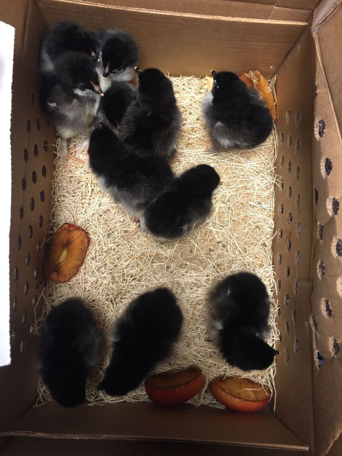 Beautiful!!!! Very fluffy, they look really healthy. I may need to come visit you for chicks next year!I finally got my Bev Davis - Black Copper Marans! I emailed Bev Davis in the spring and as most of you know she doesn't sell anything anymore. She suggested I purchase from Julie Akers. (Anyone know anything about Julie Akers?) I looked up what I could find on her birds and it appears she got them right from Bev Davis and from super dark eggs. I figured if Bev reccomended her she must have good birds. The problem was she had a 3 month waiting list. I tried to get good stock for months but I was clearly too late. I totally forgot about it and I was trying to get hatching eggs right from Bev's stock from another reputable breeder when I got an email from Julie last weekend. "Your next on the list for BCM list, do you want the birds? I can ship them Monday" YES!BTW, Julie Akers was a pleasure to work with and I feel like her prices were fair. Not cheap by any means, but fair.