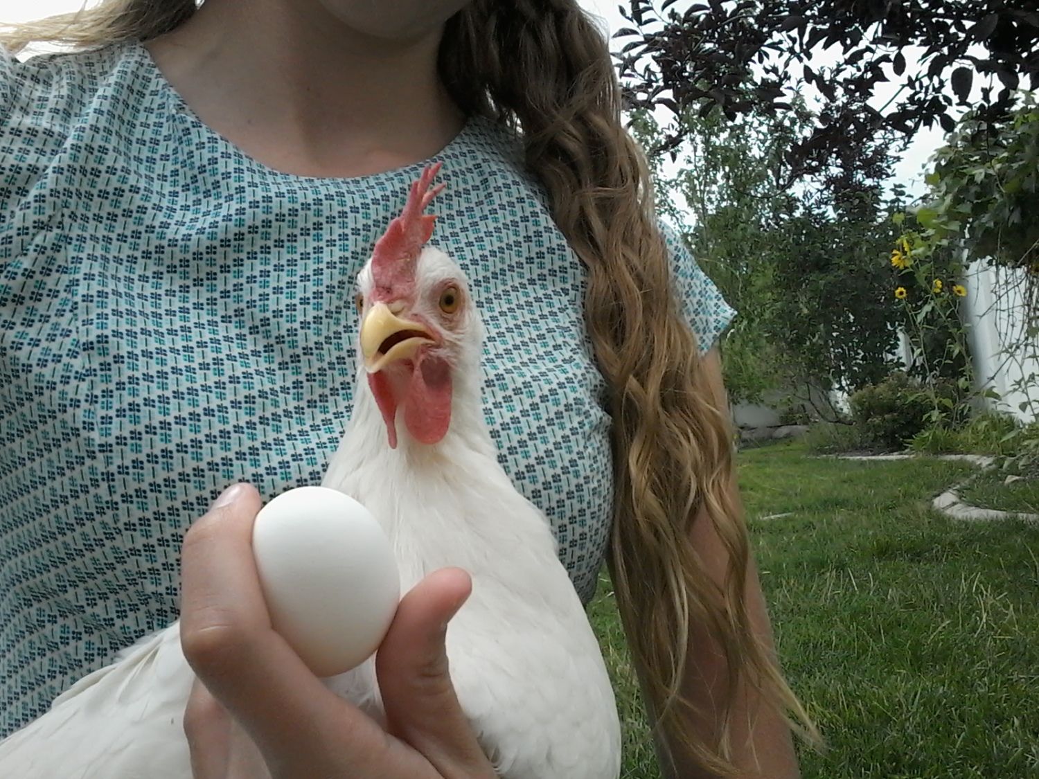 My little white leghorn layed her first egg today! :ya she is 20&1/2 weeks old. Here she is with Her egg.