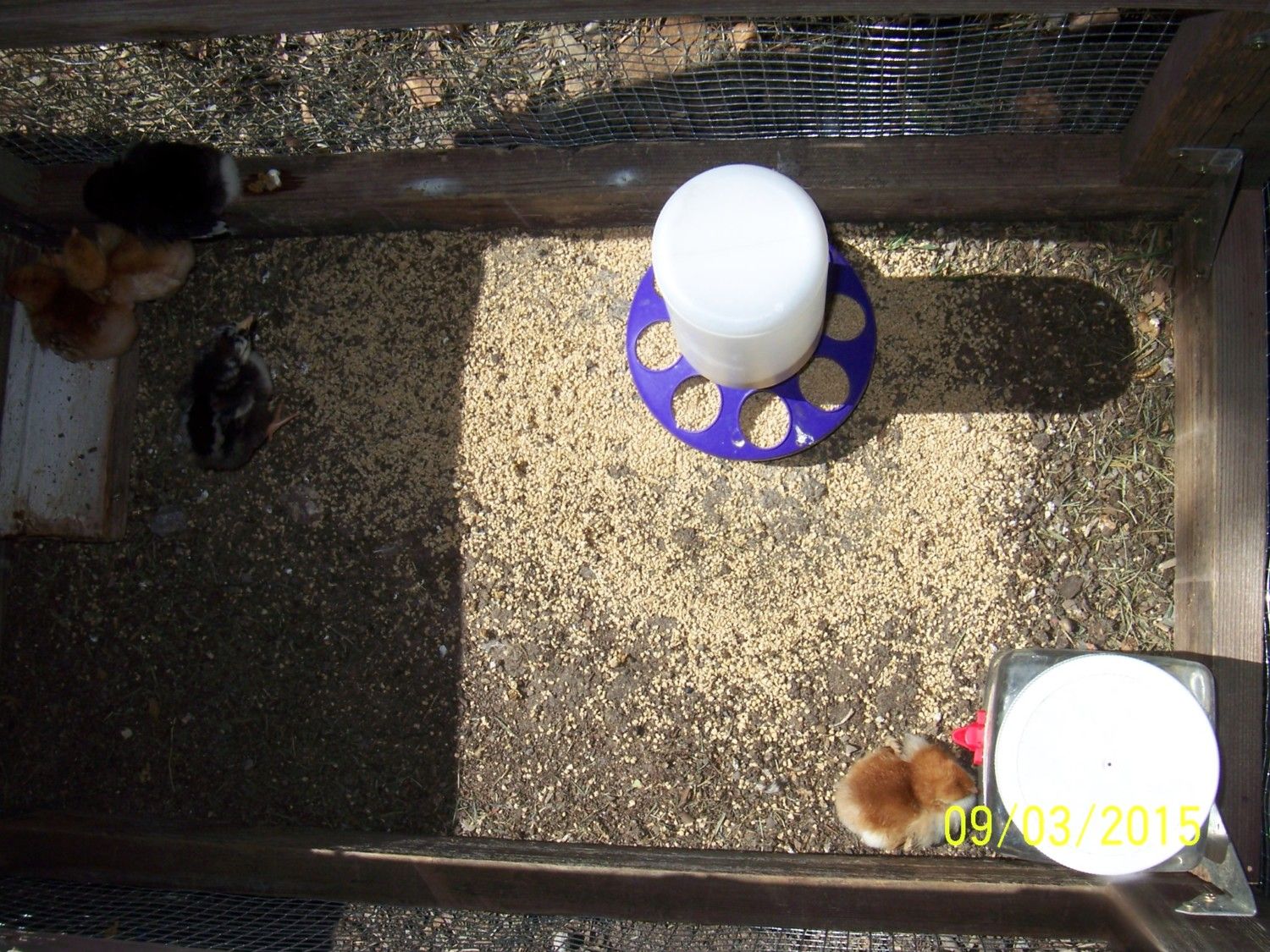 (If you use horizontal water nipples, you don't have to worry about providing a chick waterer too, the broody will show the chicks how to use it.)